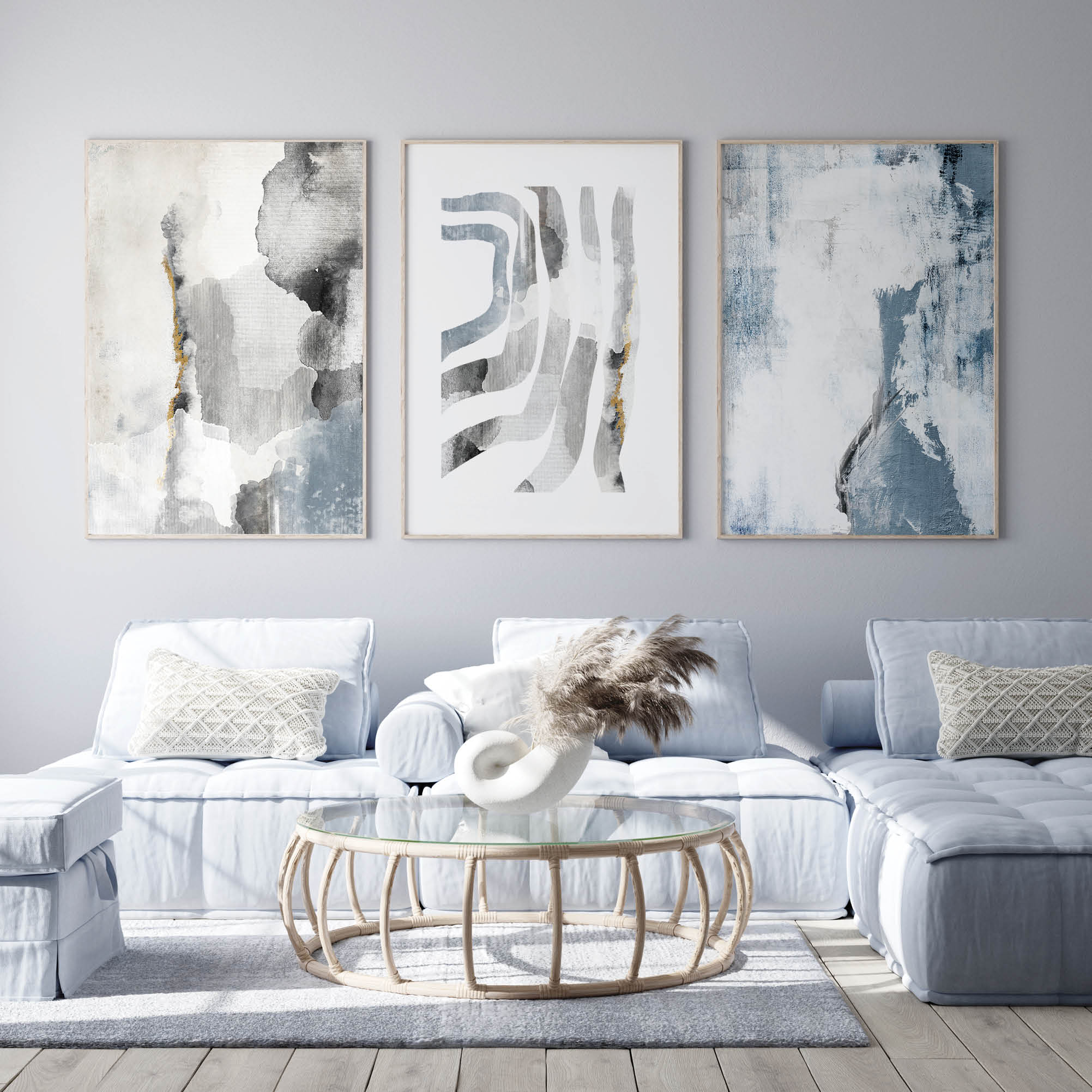 The “Cloudy Surface” poster set brings to life a subtle play of light and shadow, enriched with discreet details in gold. Each poster in the set, with abstract motifs that carefully combine pastel and strong blue tones, represents the harmony of natural elements and modern design. Together, they create a unique visual story that reflects the depth and complexity of post-storm clouds. The neutral palettes of these posters allow them to fit perfectly into different decorative styles, from minimalist to eclectic, and bring a sense of peace and contemplation to any room. They are ideal for those who are looking for an artistic expression that combines classic beauty and modern aesthetics, and bring a calm but expressive character to the home.