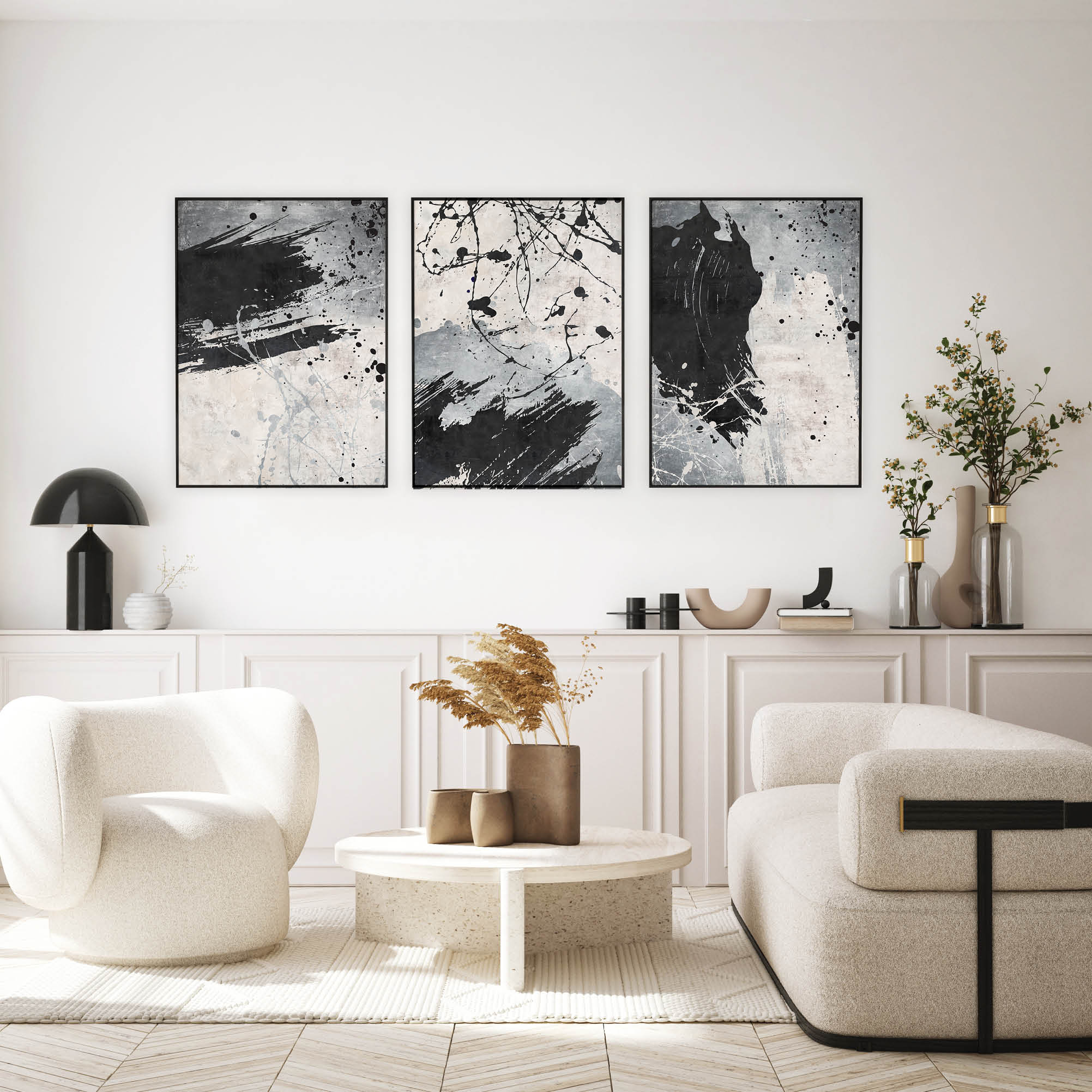 Together, these three “Dark Whispers” posters create a chaotic yet intriguing atmosphere, ideal for modern spaces dominated by wild lines and minimalist design. This series fits perfectly in office spaces, living rooms or as part of a gallery wall, adding artistic expression and sophistication to any environment.