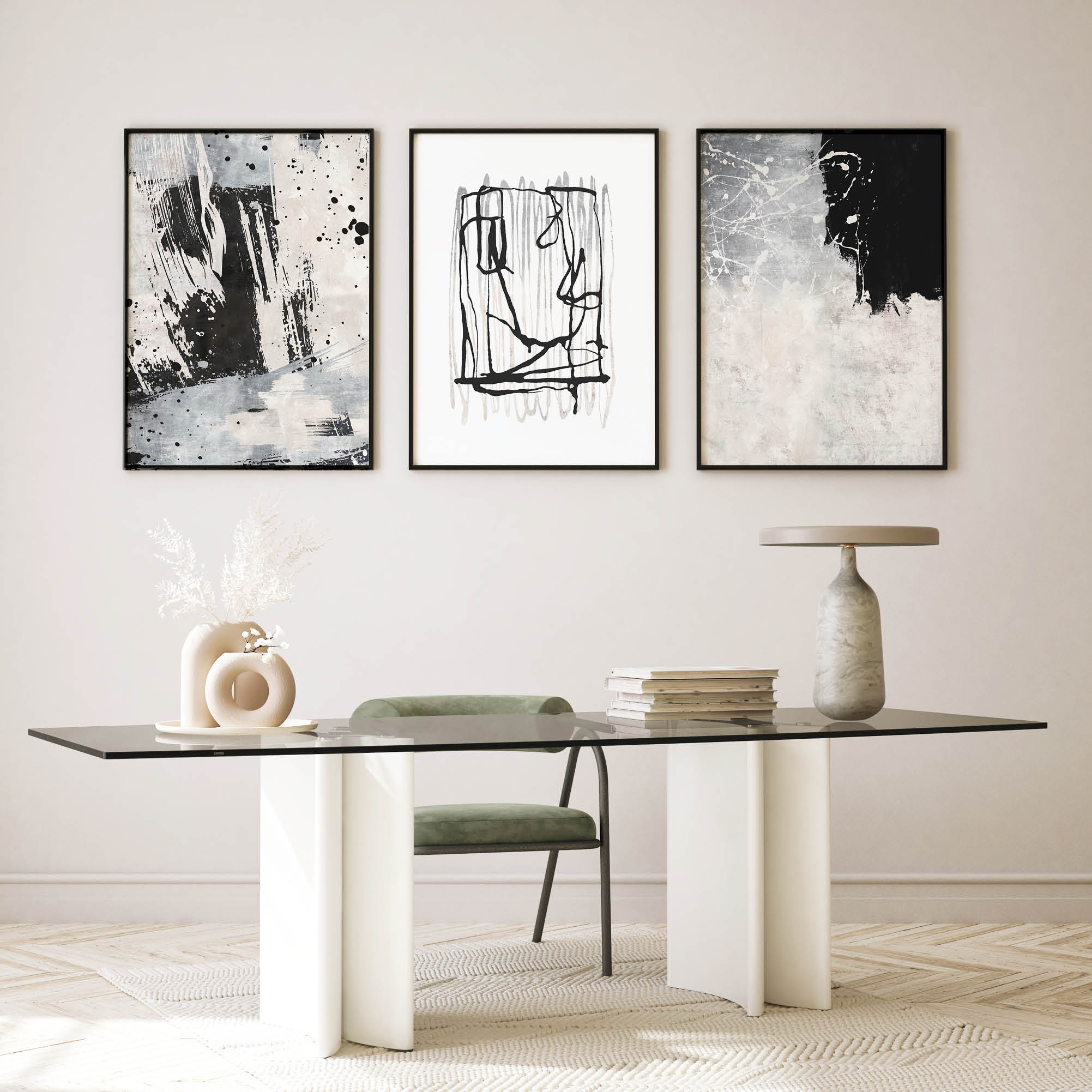Introducing “Pastel Canvas Game” – a magical set of three premium posters that brings artistic play through playful brush strokes and abstract shapes in different pastel tones, shades of gray and black. This set creates a vibrant color palette and dynamic artistic expression.