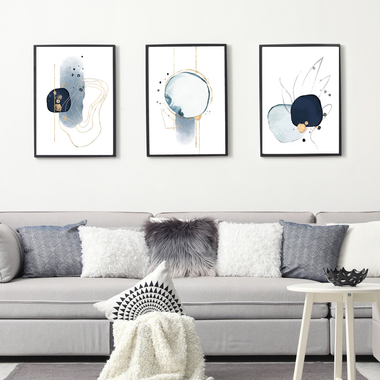 If you decide on posters, they come without a frame, while the canvas pictures arrive ready to hang (blind frame). Refresh your environment with the play of blue shades and gold accents “Playful Navy Blue”. Let this combination of colors enchant you and bring liveliness to your space, creating an inspiring ambiance in your home.