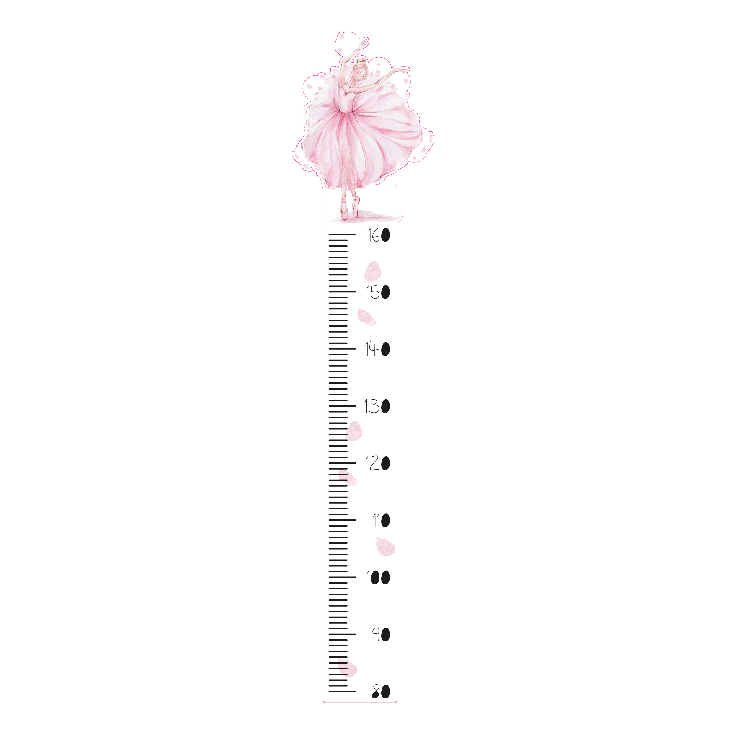 Firstly, the chart is practical. It measures heights from 60 to 160 cm, which makes it simple to track progress year after year. Secondly, it is decorative. The ballerina design adds personality and warmth, so it fits easily into both boys’ and girls’ rooms.