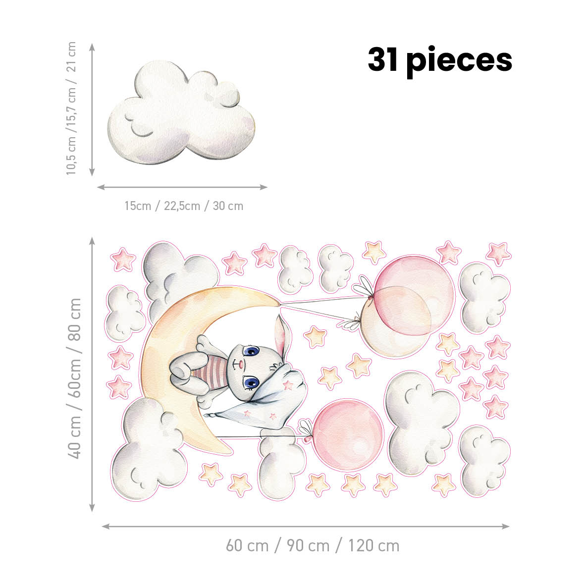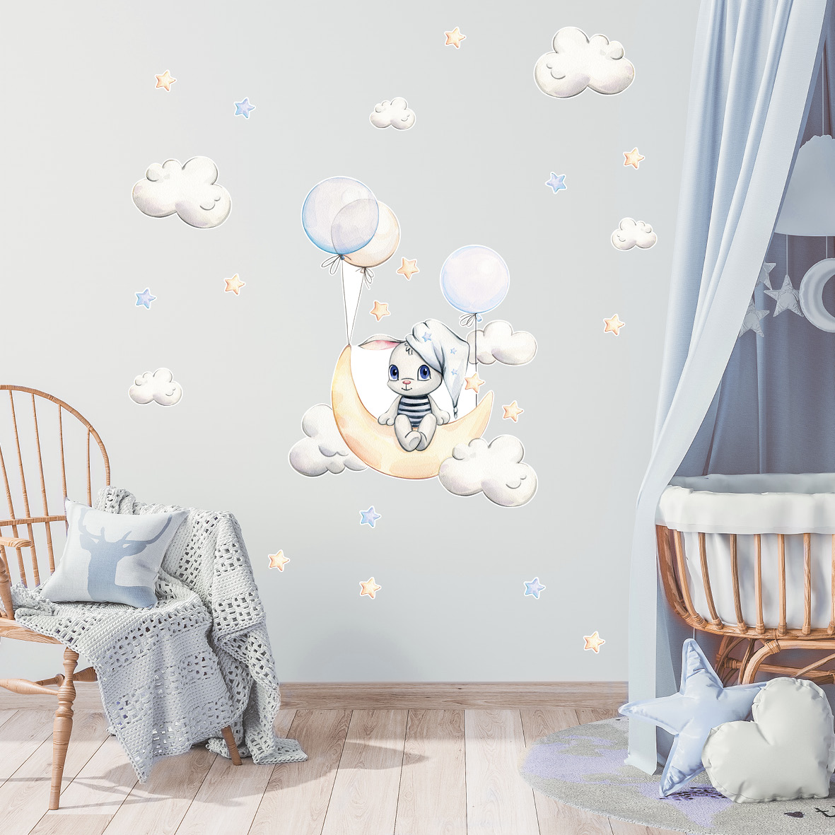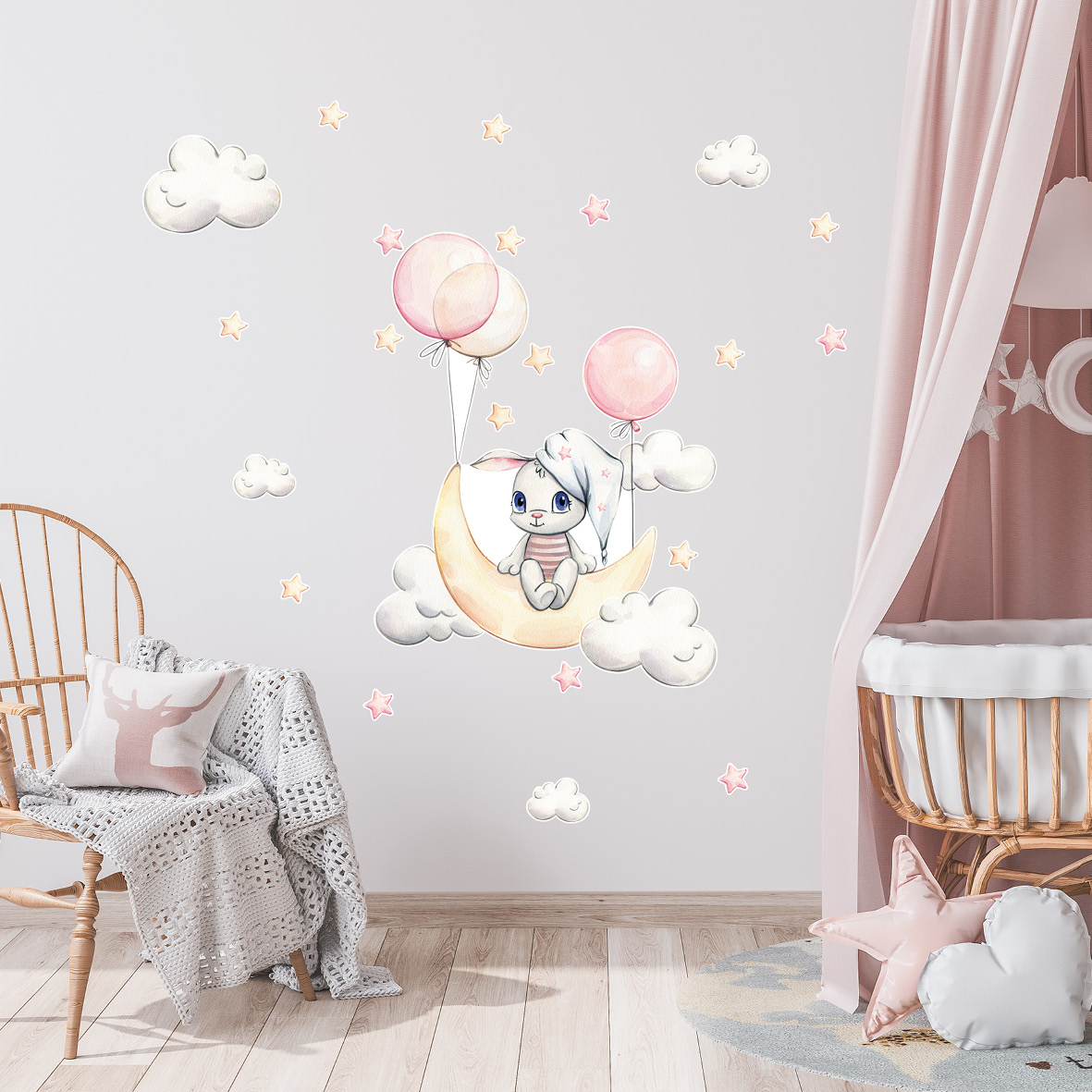 Create a dreamy atmosphere with Kids Room Wall Decals Bunny Balloons. Gentle details and soft colors bring calm, comfort and a sense of wonder to the room. It turns interiors into magical spaces full of creativity and beauty.