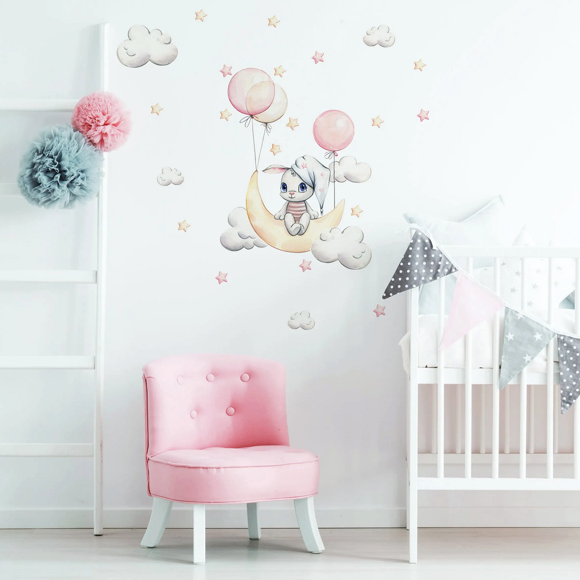 Designed for UAE homes, Kids Room Wall Decals Bunny Balloons blends elegance with child-friendly safety. It makes decorating easy and fun, while creating interiors filled with comfort. Add it to your nursery or bedroom for a timeless look.