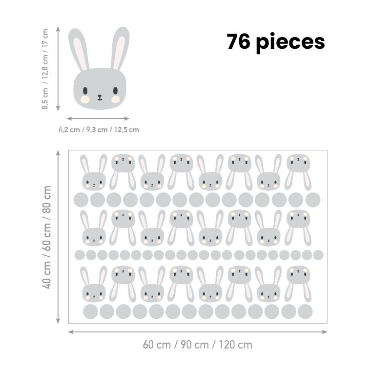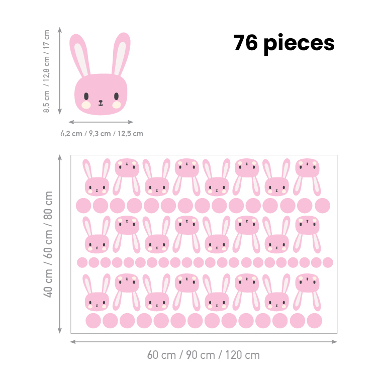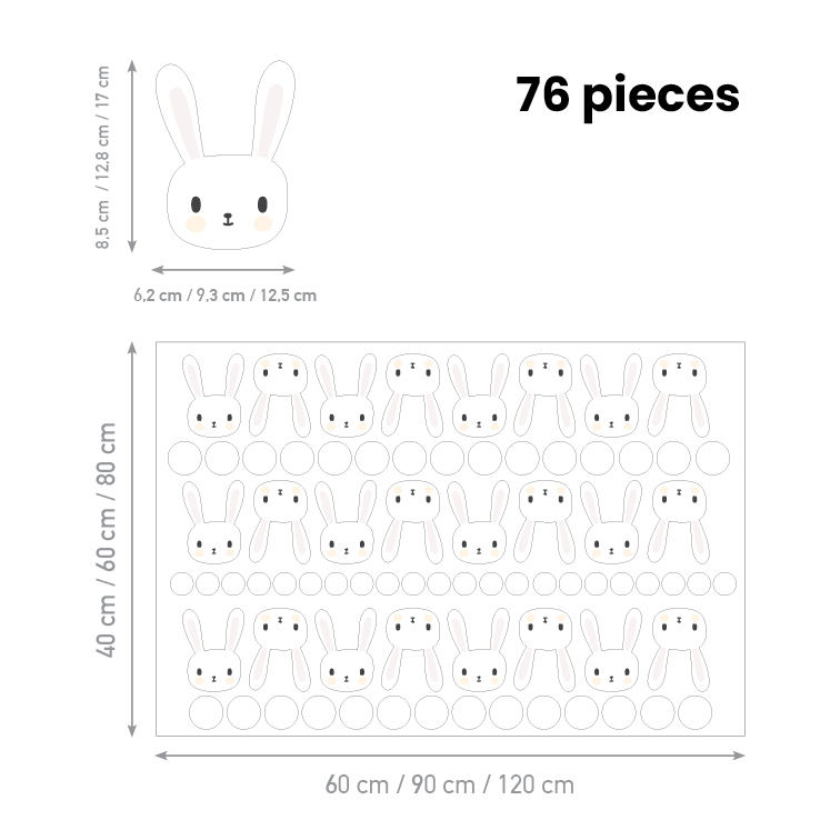 Create a dreamy atmosphere with Children’s Wall Stickers Dots & Bunnies. Gentle details and soft colors bring calm, comfort and a sense of wonder to the room. It turns interiors into magical spaces full of creativity and beauty.