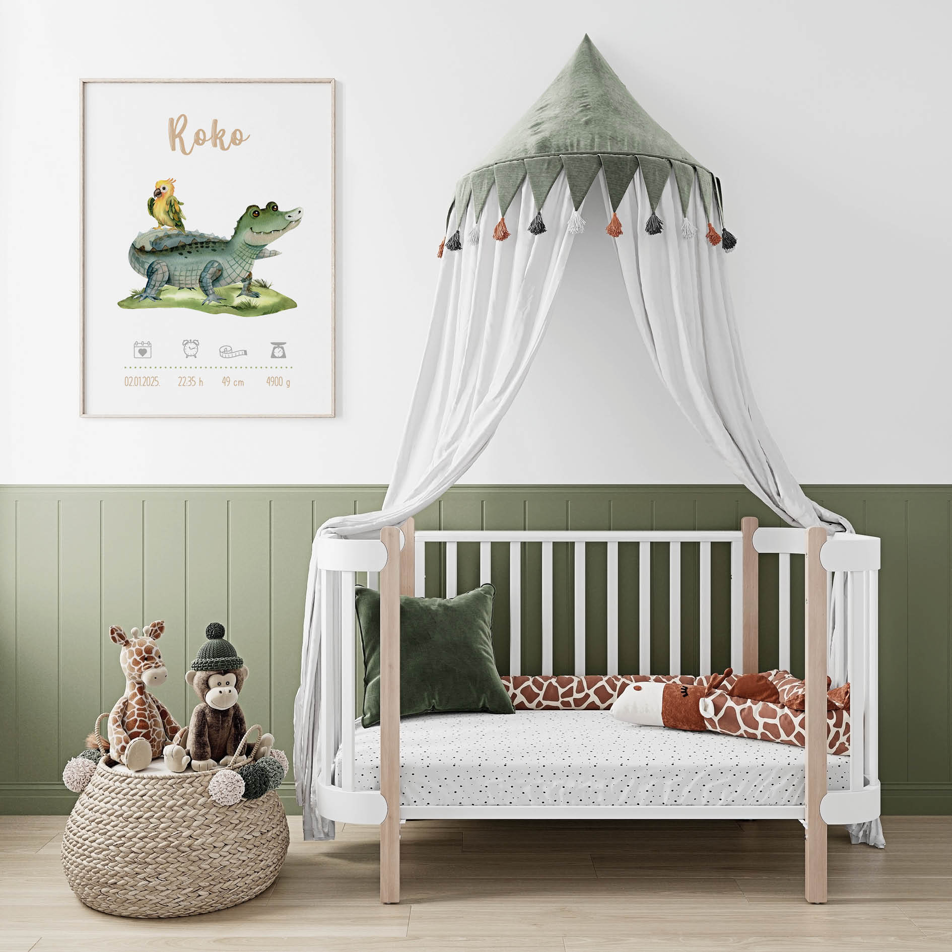 Personalisation makes the crocodile poster truly unique. Adding your child’s name into the safari scene builds pride, joy, and a sense of belonging. More than wall art, it becomes a personal keepsake that transforms daily routines into meaningful family moments.