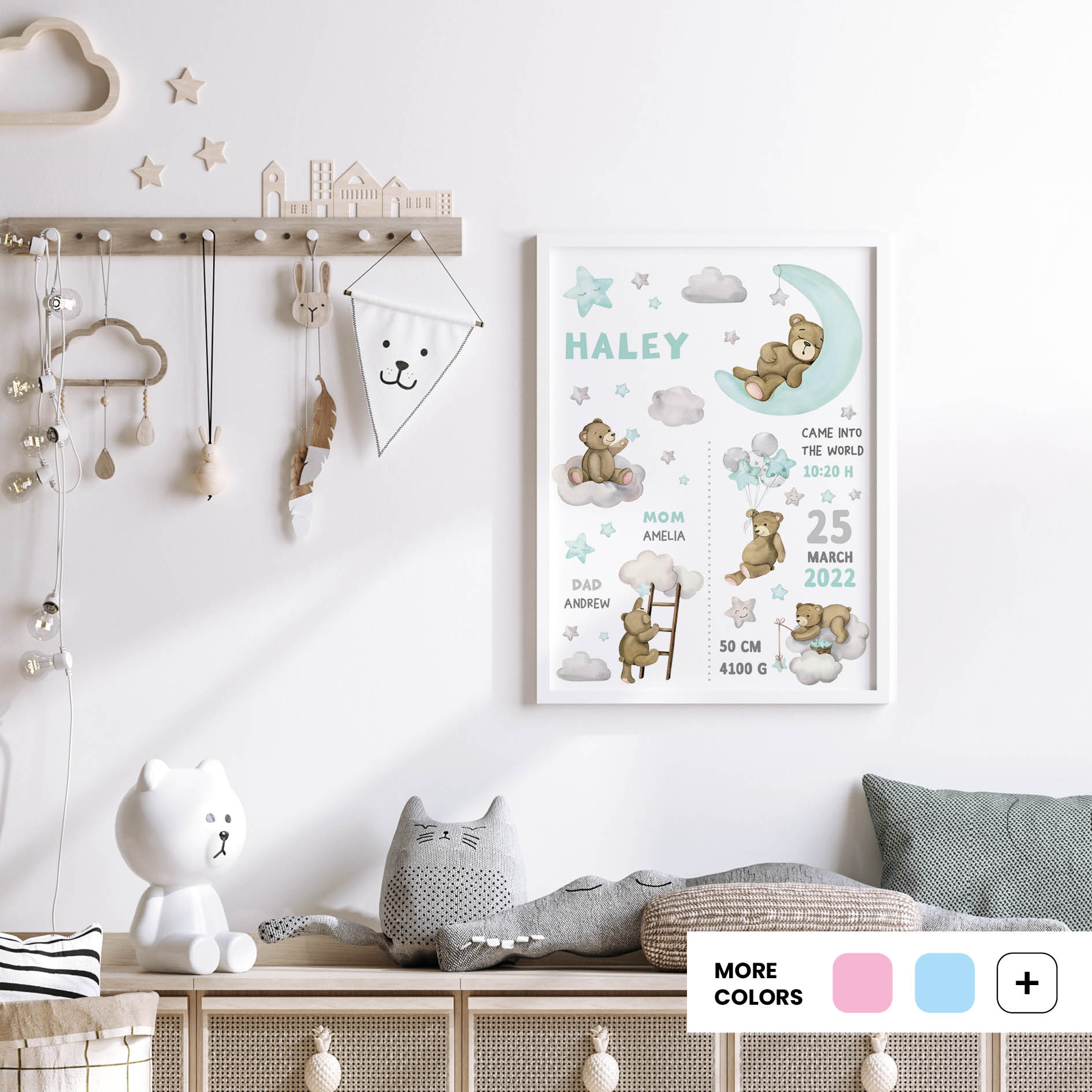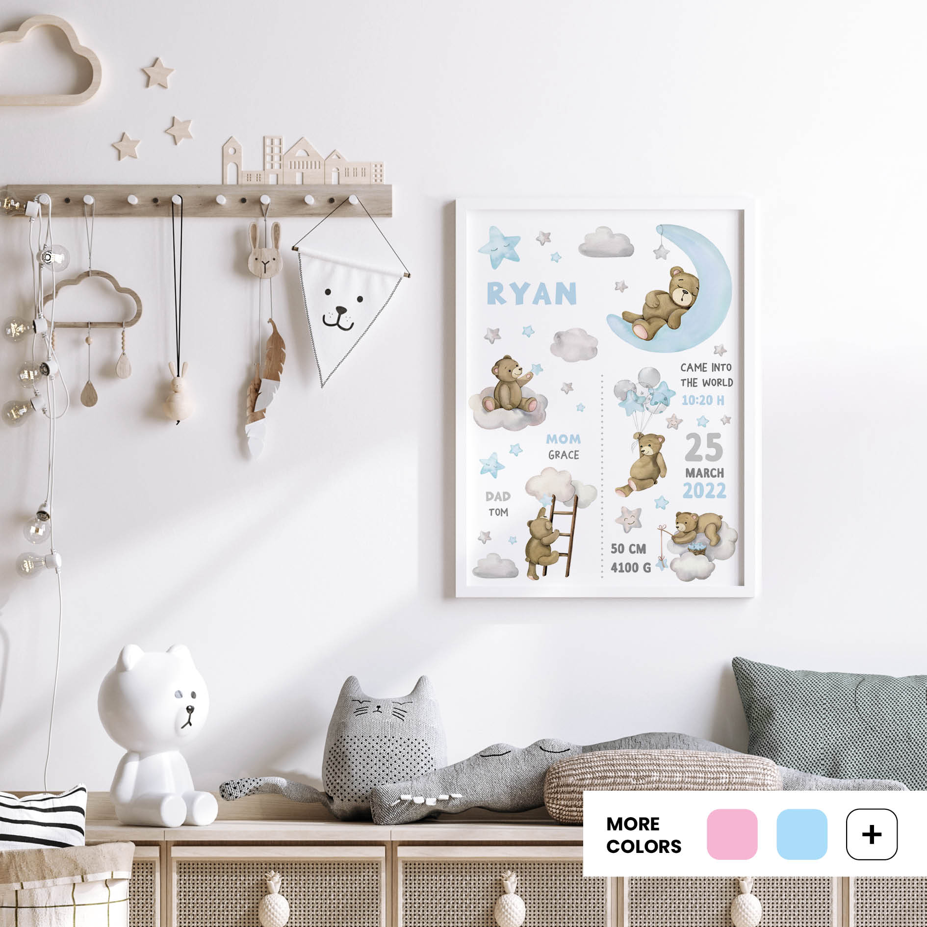 Personalisation makes Teddy’s Adventures truly special. Adding your child’s name into the scene creates pride, joy, and a sense of belonging. More than wall art, it becomes a keepsake that enriches everyday family life – from playful afternoons to bedtime rituals and quiet moments together.