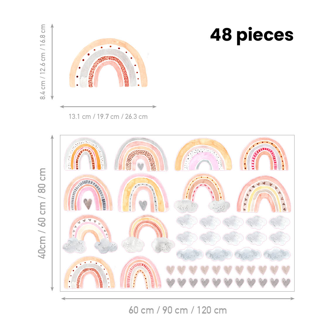 Brighten nurseries with rainbow sky wall decals in soft hues. Premium textile material is safe, removable, and styled easily.