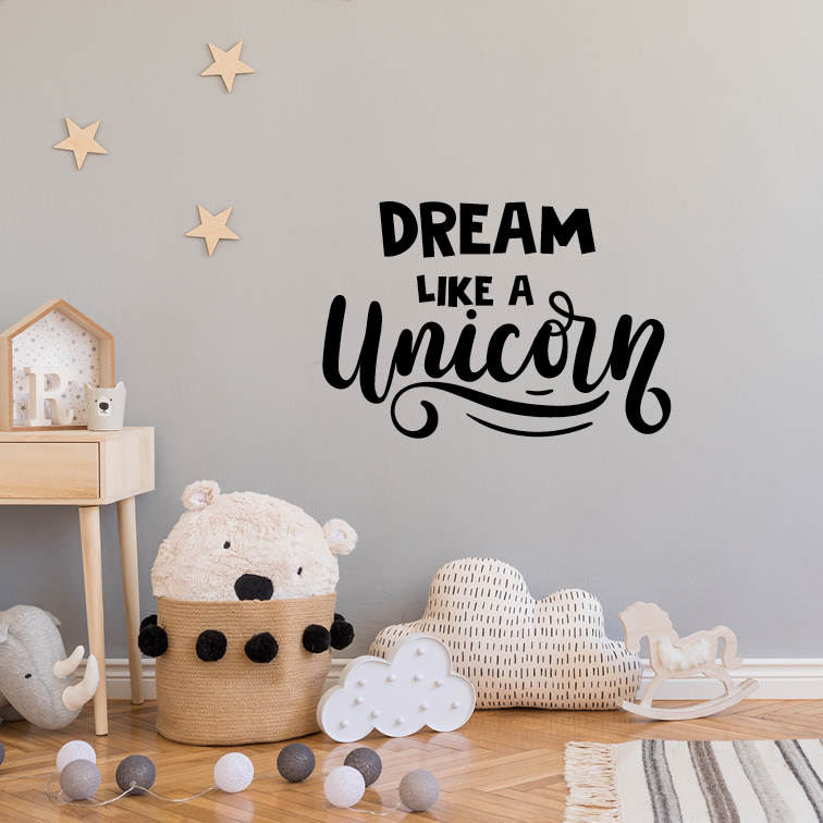 Add whimsy with unicorn dream quote decals in pastel tones. Textile wall stickers are safe, removable, and styled quickly in UAE interiors.