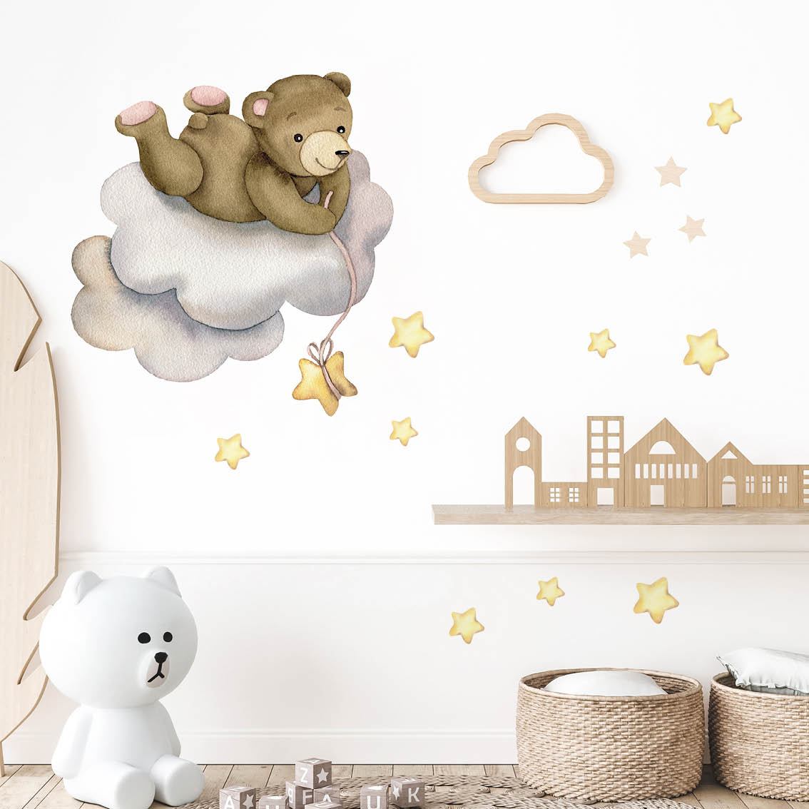 Choose Kids Wall Stickers Teddy’S Cloud Adventure for a room that feels both stylish and playful. It gives walls a magical touch while staying practical and safe. A design that parents love and children truly enjoy.