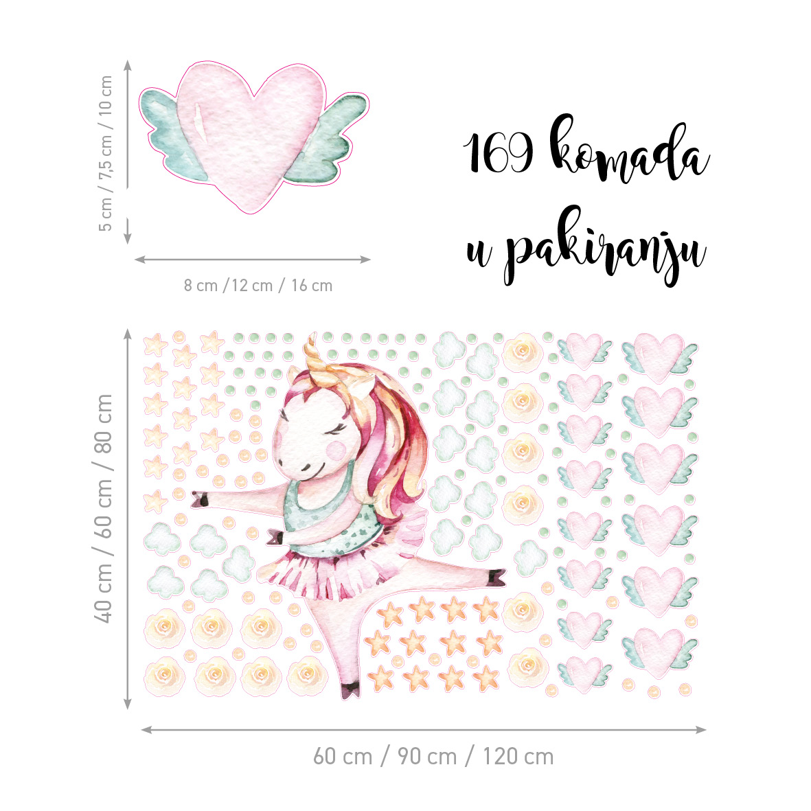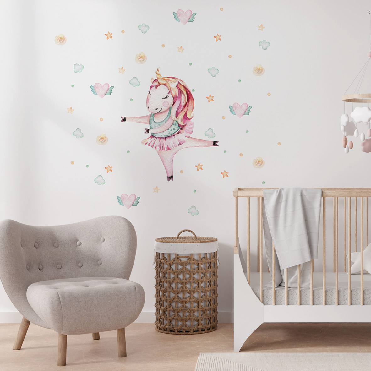 Celebrate joy with dancing unicorn decals in playful colours. Textile material is safe, removable, and styled quickly in children’s spaces.