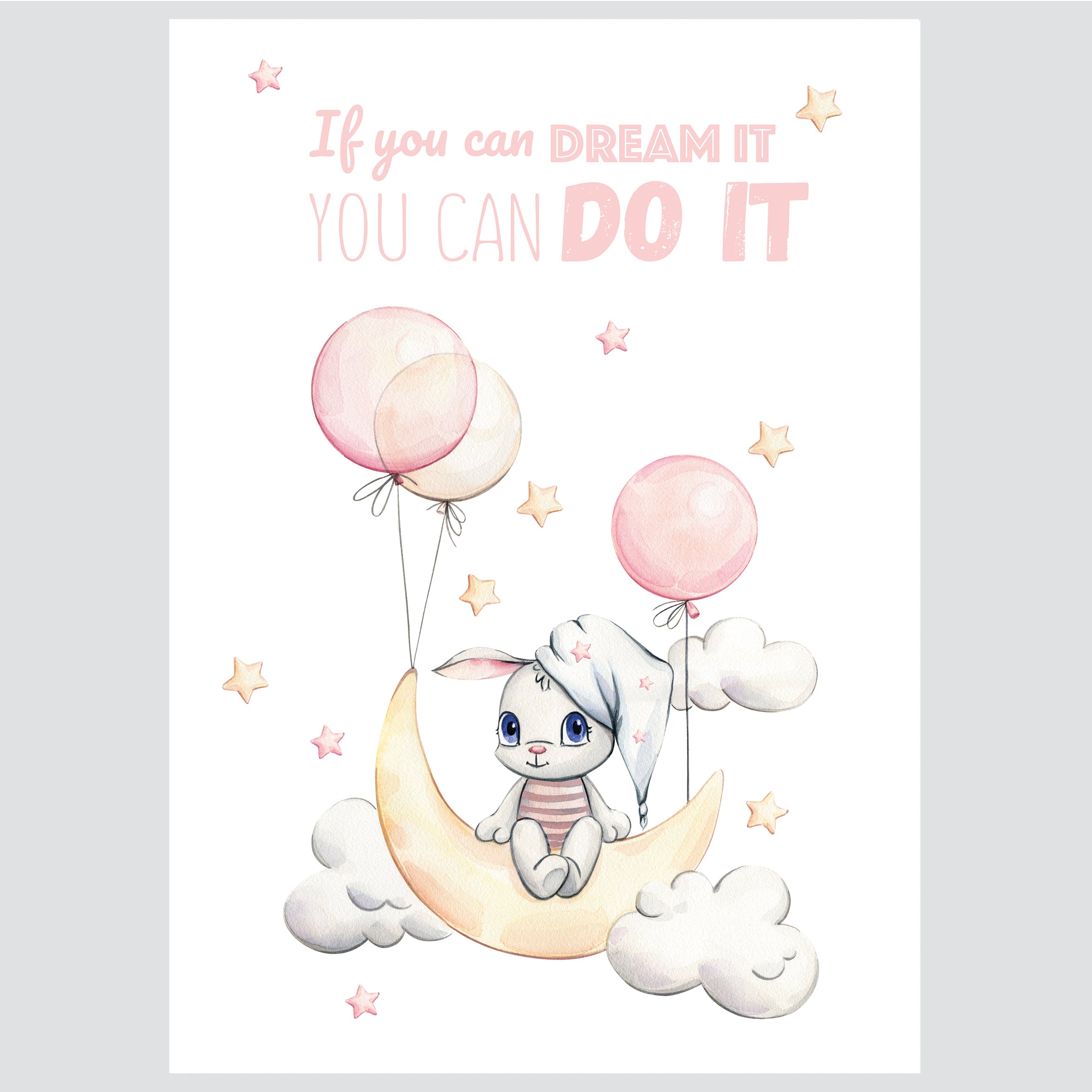 Text accompanying the illustration may read: “If you can dream it, you can make it happen.” These words are an encouraging message for every child to believe in their dreams and look forward to their realization.