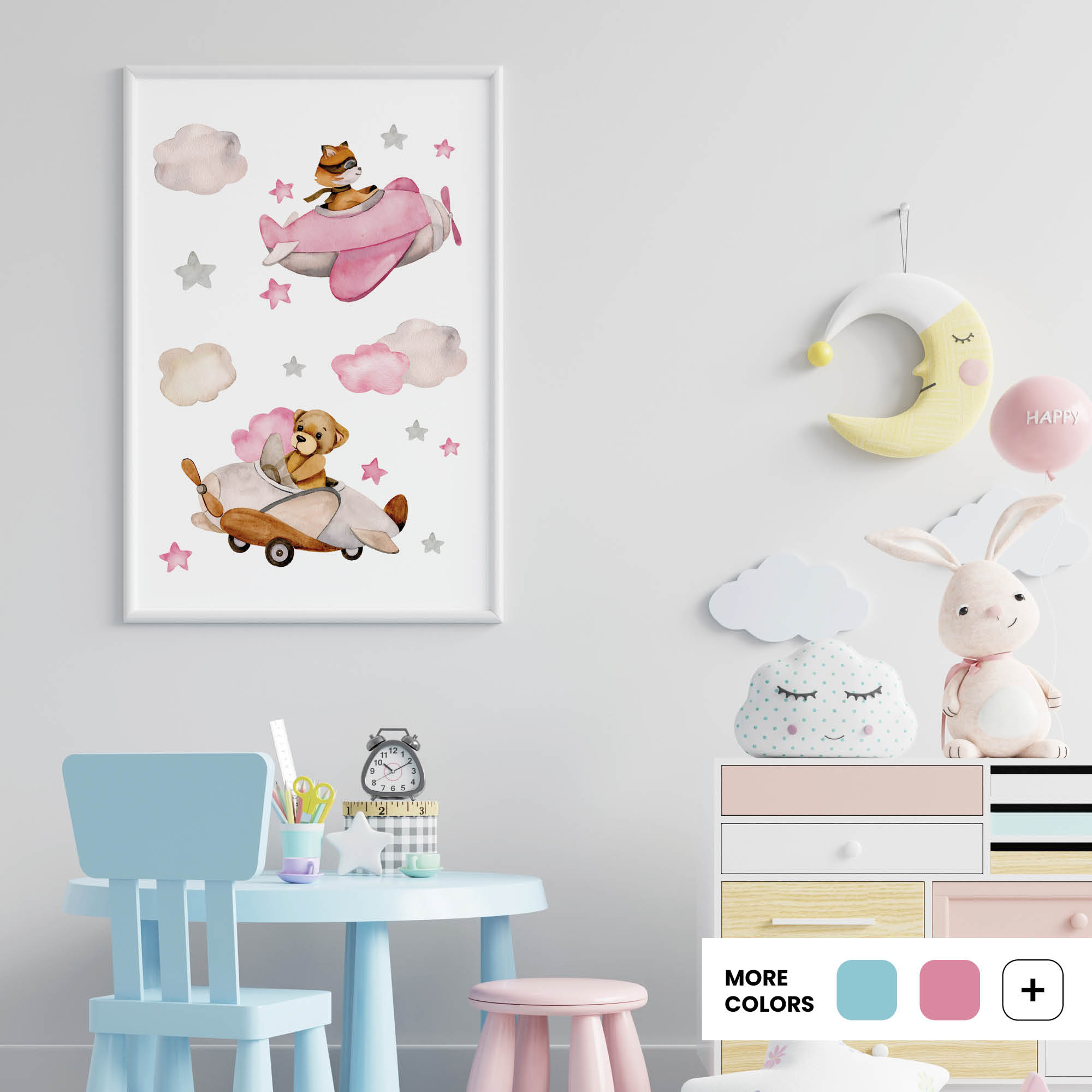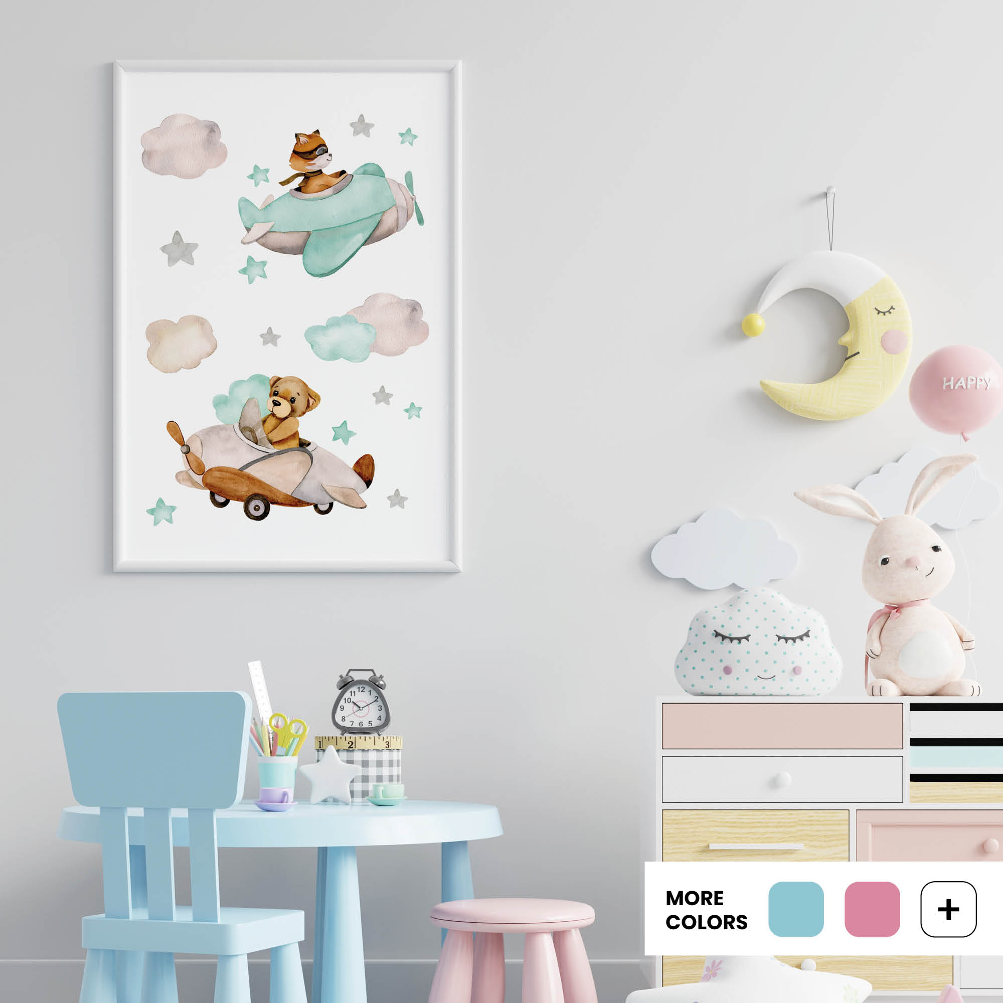 Gentle characters in the clouds create an atmosphere of peace and friendship. Ideal for the space where the first fairy tales and friendships are born.