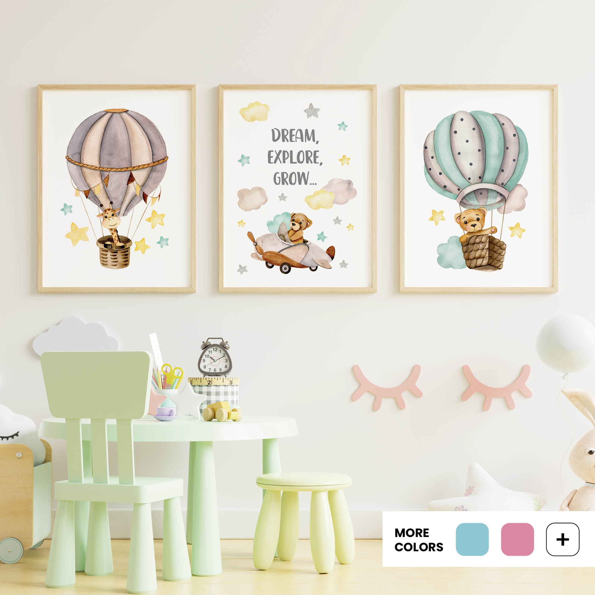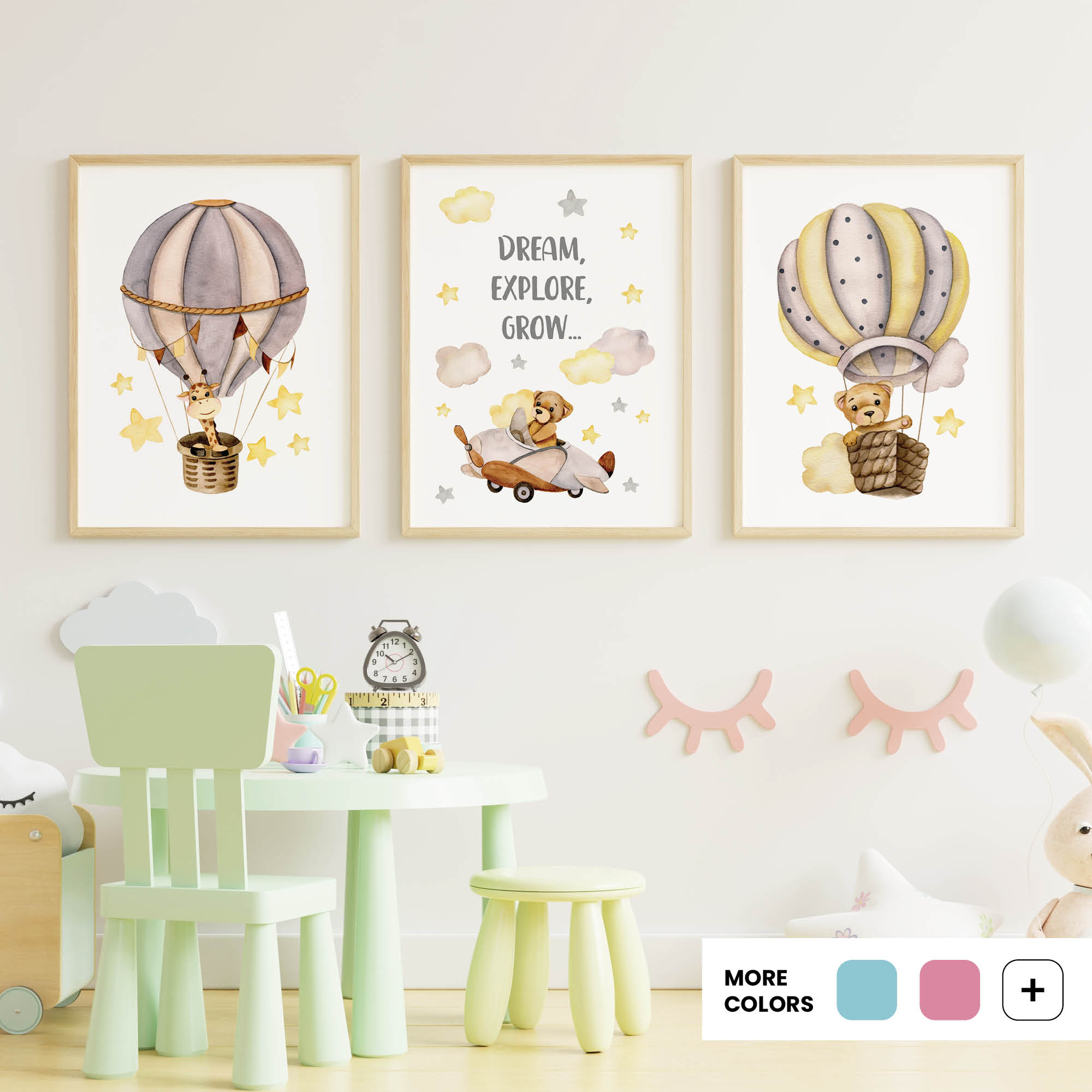 - Curated sets for cohesive nursery and playroom walls