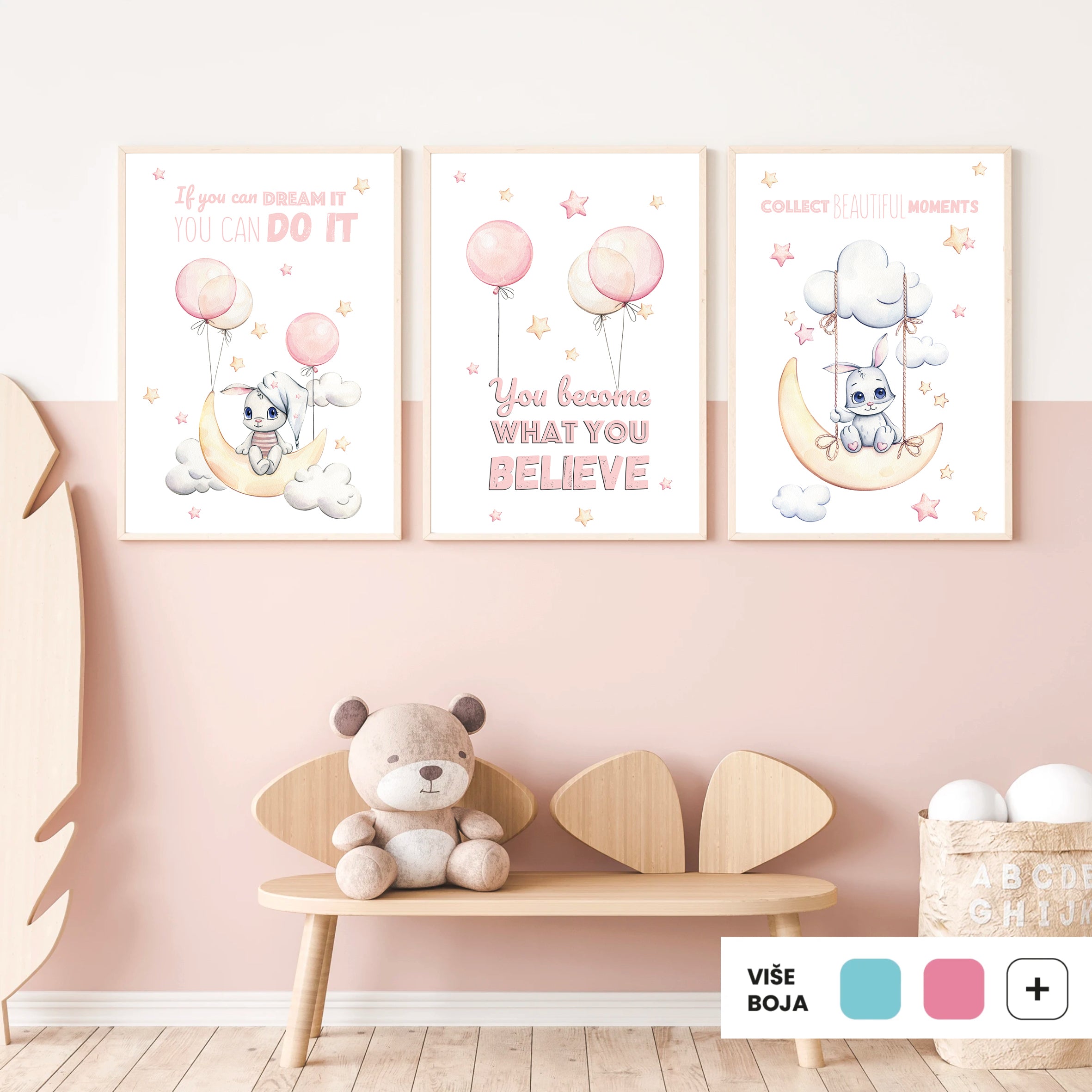 Nursery Poster Set | Bunny Swing & Balloons | HIAWorkshop®
