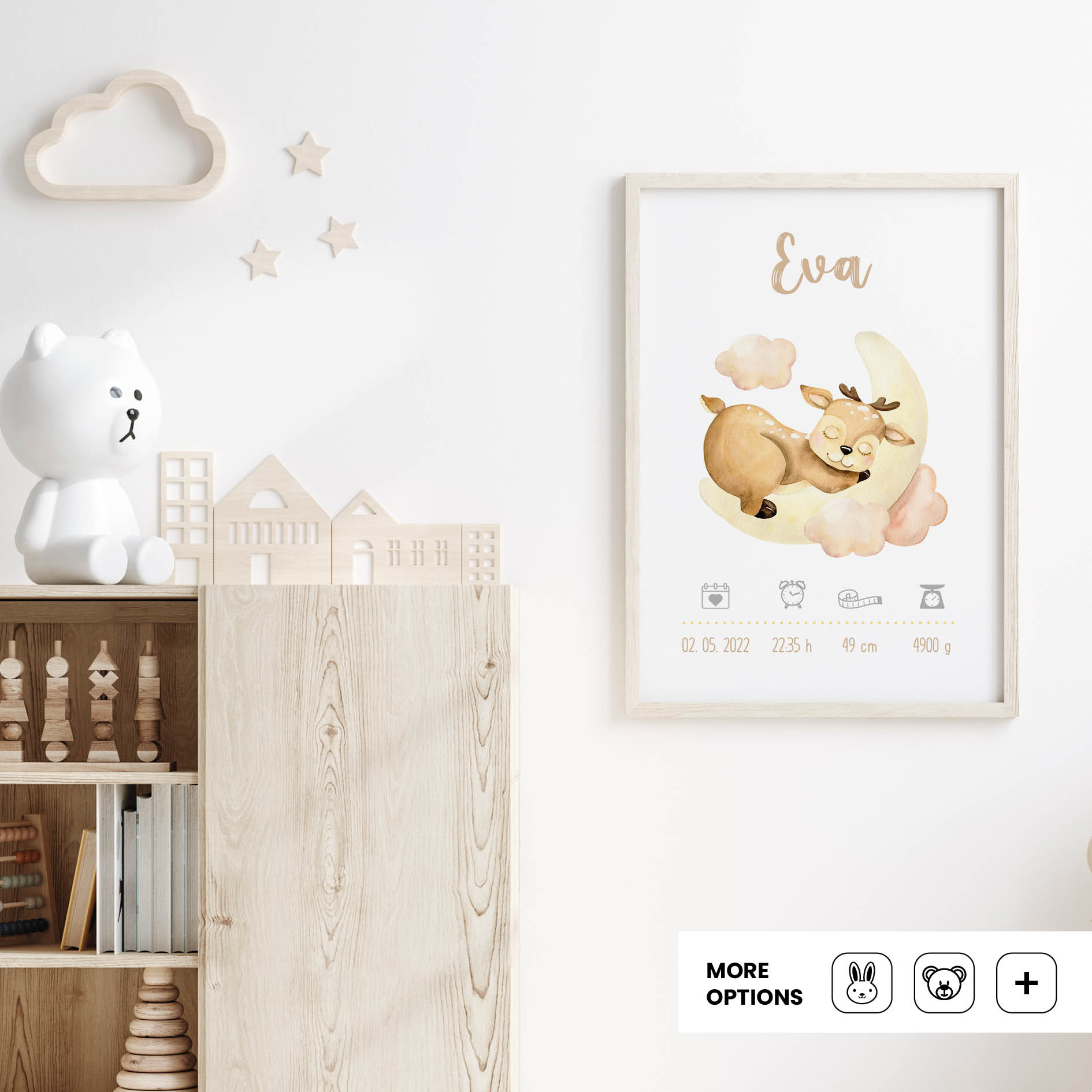Personalised Forest Animals Poster Fawn UAE – Dreaming Fawn | HIA Workshop®