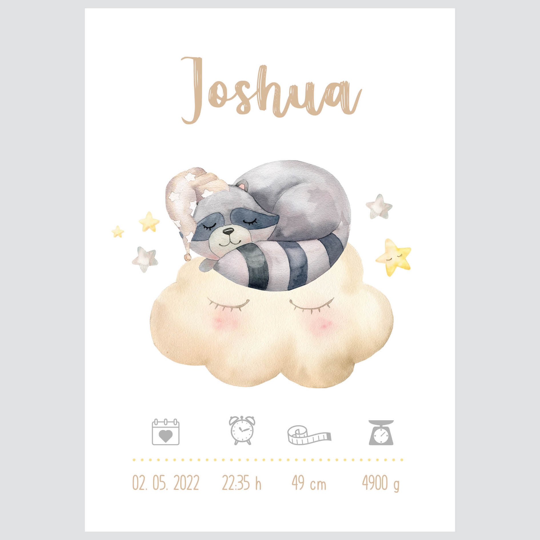 Personalised Forest Animals Poster Raccoon UAE – Dreaming Raccoon
