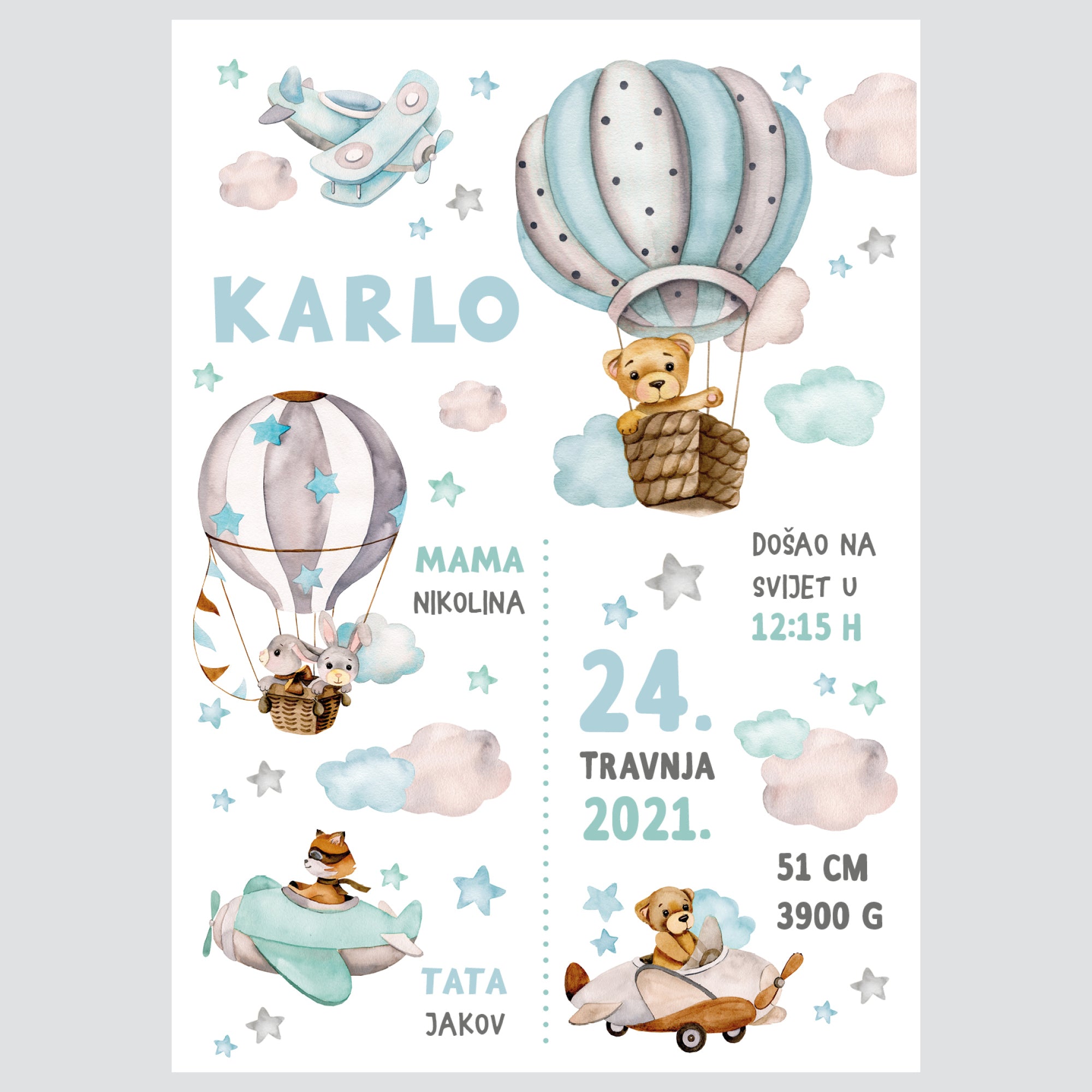 Personalised Hot Air Balloon Poster Boys UAE – Among the Clouds Boys | HIA Workshop®