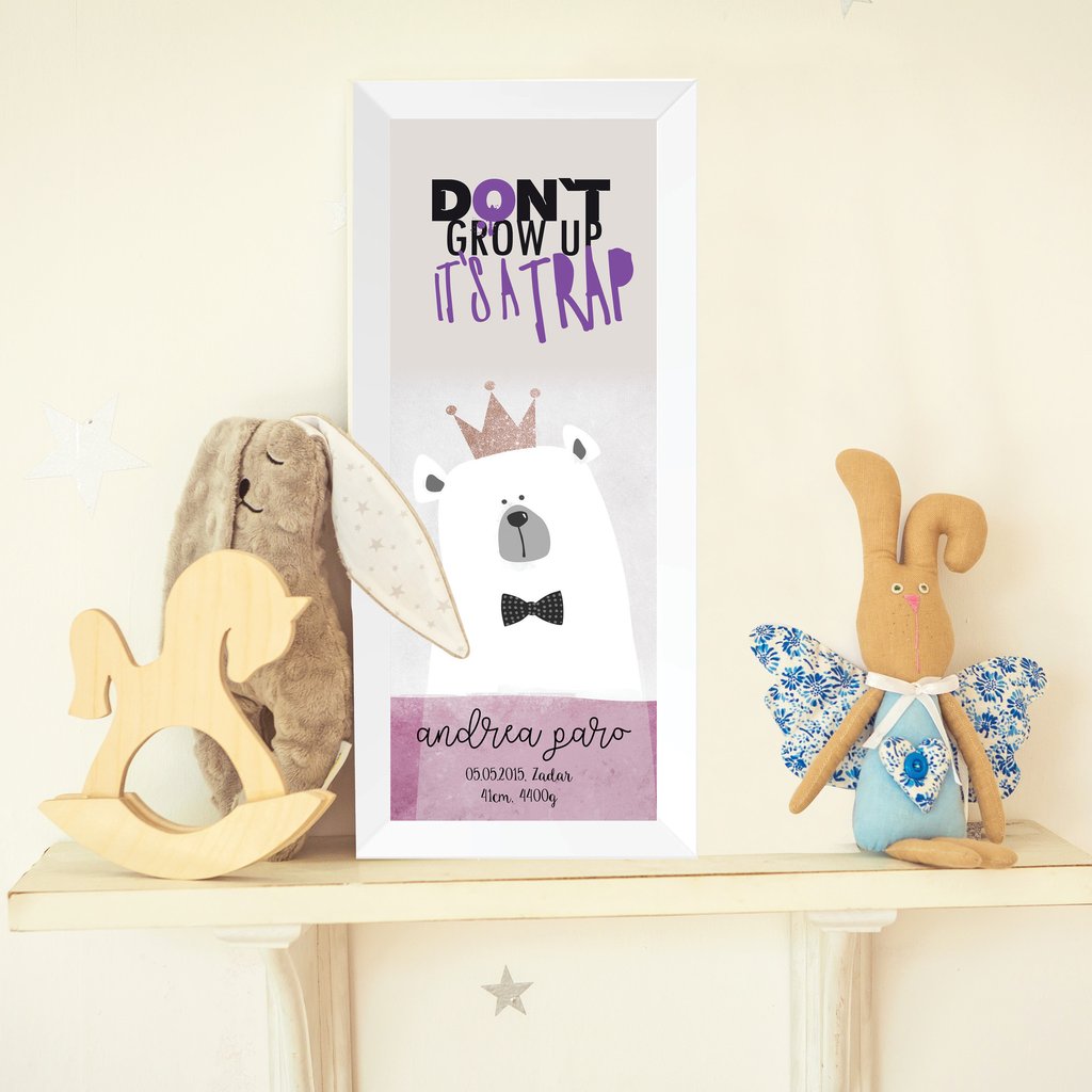 Personalisation makes the Don’t Grow Up Purple poster truly unique. Adding your child’s name into the design builds pride, joy, and a sense of belonging. More than wall décor, it becomes a keepsake woven into family life – from cheerful mornings to bedtime routines filled with imagination and love.
