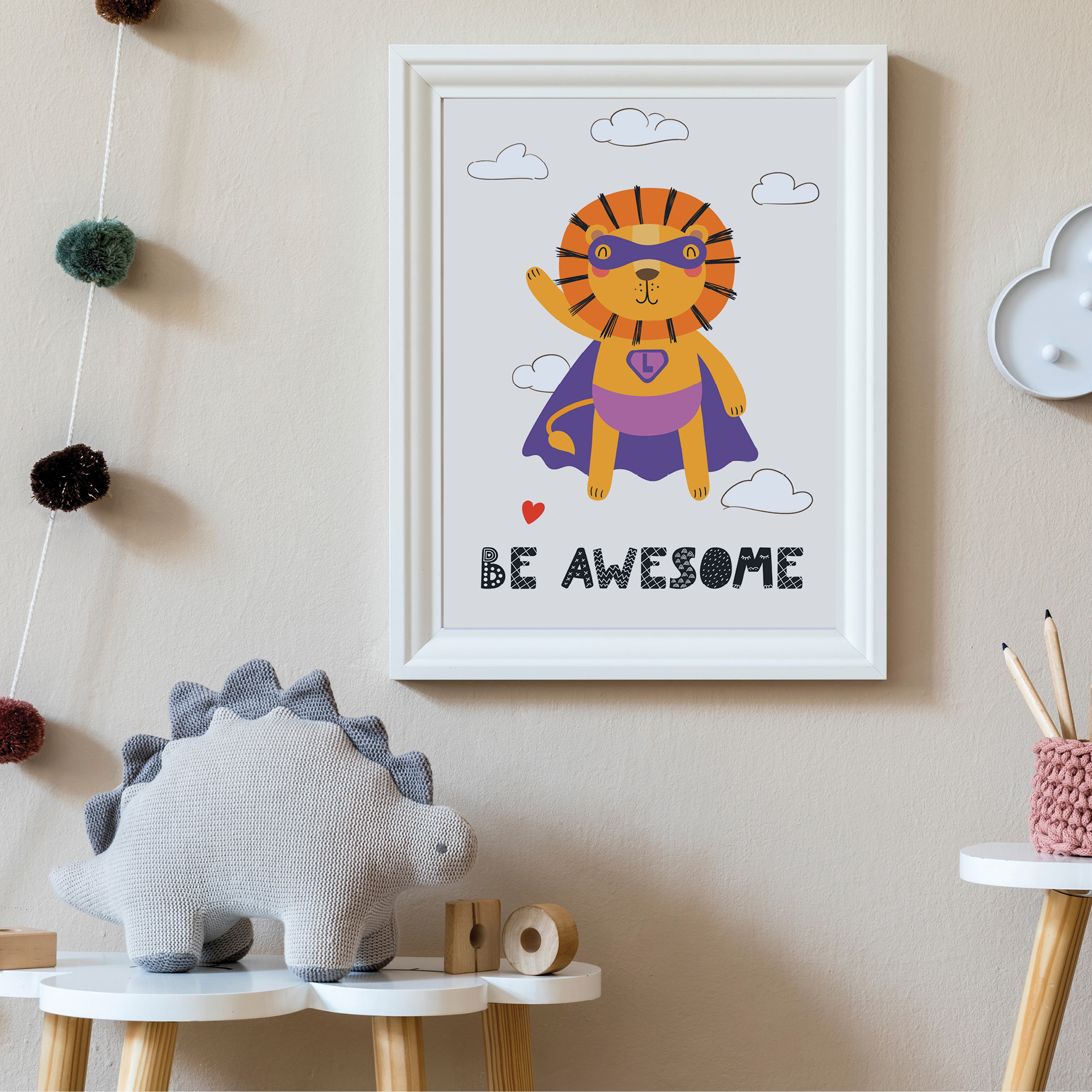 The illustration radiates warmth and encouragement, giving children the message that inner strength and being “amazing” is something that everyone possesses. Ideal for boosting morale and as a daily reminder that everyone can be the hero of their own stories, this illustration is the perfect addition to any children’s space where imagination and good vibes should flourish.