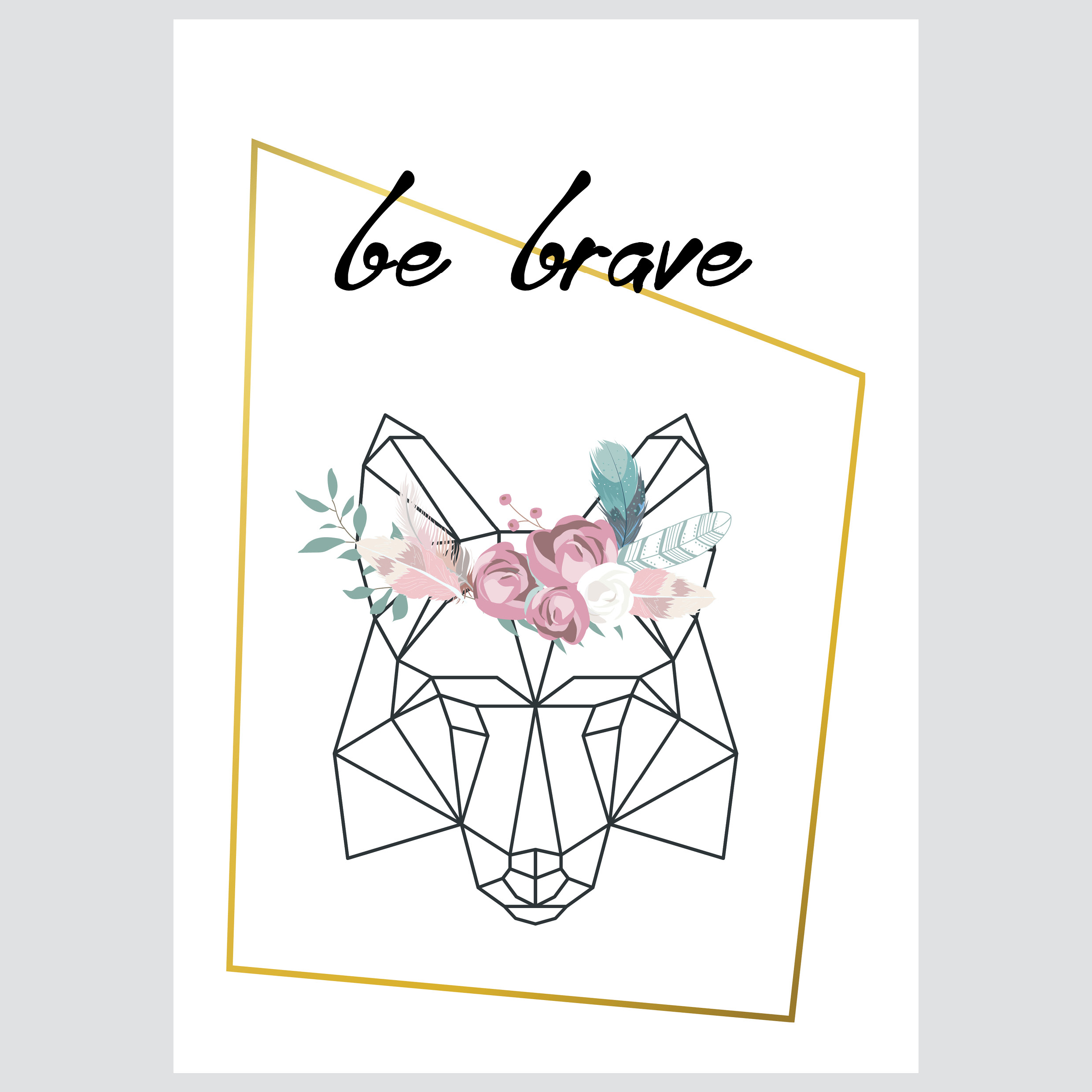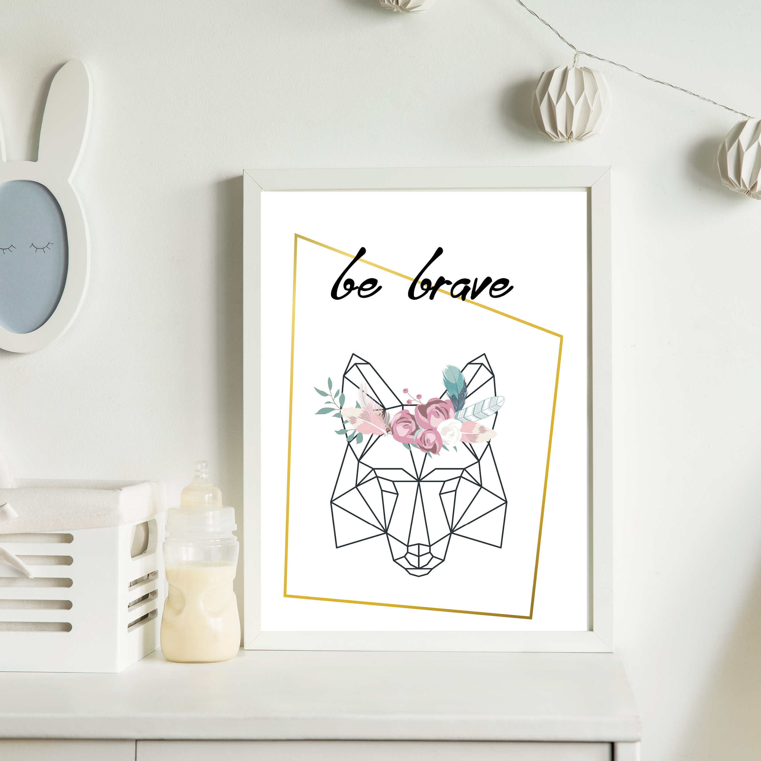 An image that exudes boldness and beauty, “Be Brave” isn’t just an embellished word – it’s a call to action. Courage is not the absence of fear, but the decision to do something despite the fear. This beautiful wolf, surrounded by delicate flowers and feathers, reminds us that true courage is gentle and kind.