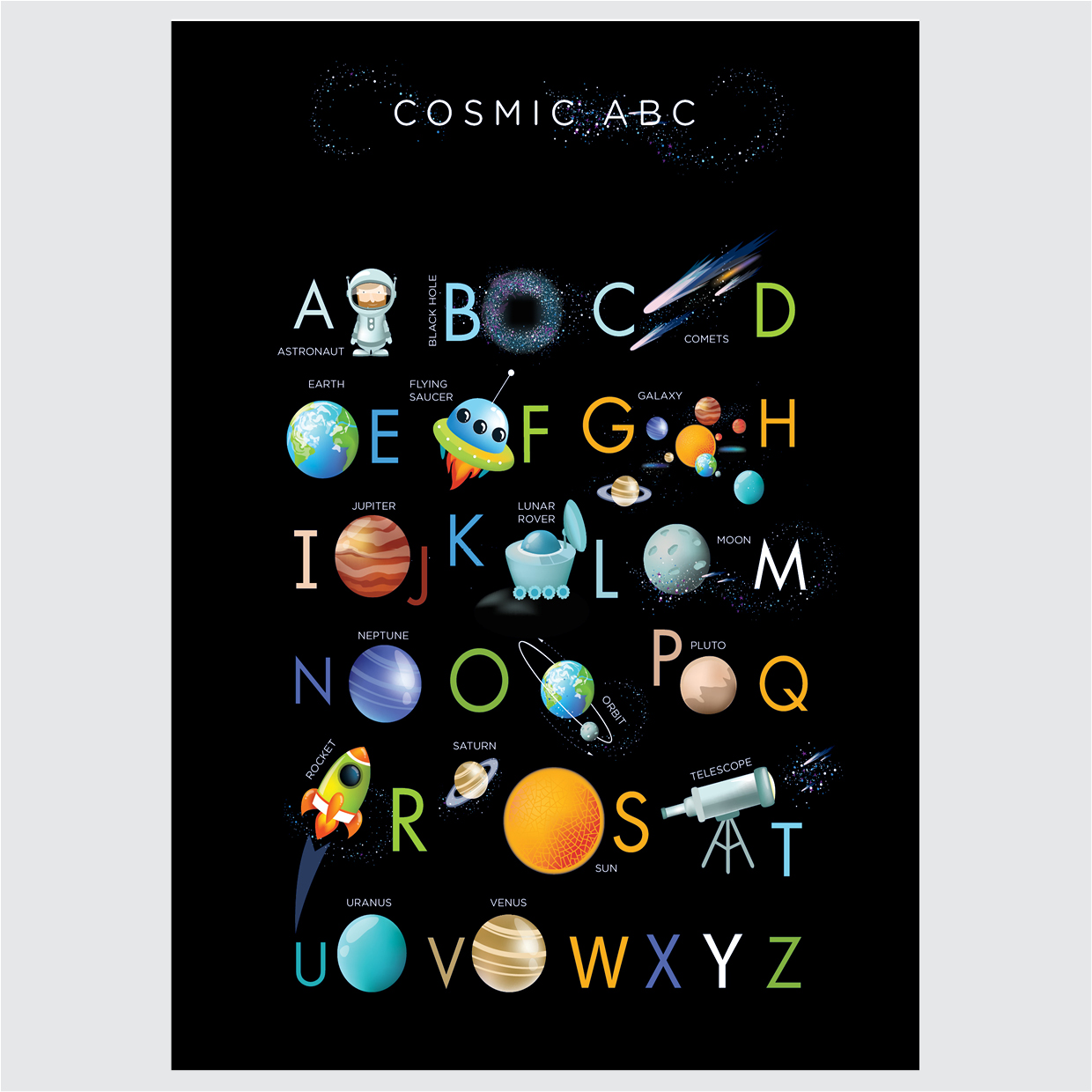 A cheerful alphabet across the galaxy encourages learning through play. Perfect for little scientists and space explorers.
