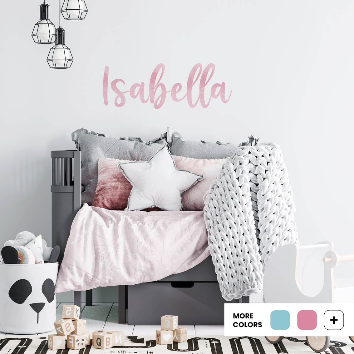 Made from premium textile material, the Isabella Alphabet stickers are soft to the touch and feature delicate watercolor tones. Unlike standard vinyl, textile decals are repositionable, allowing you to adjust placement without losing stickiness or damaging walls. The smooth matte finish ensures they look elegant in any nursery or kids’ room.