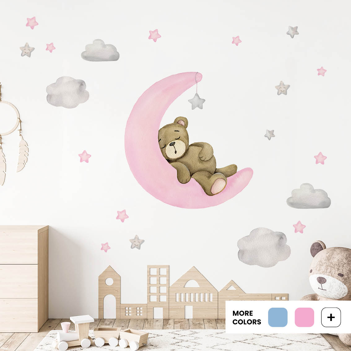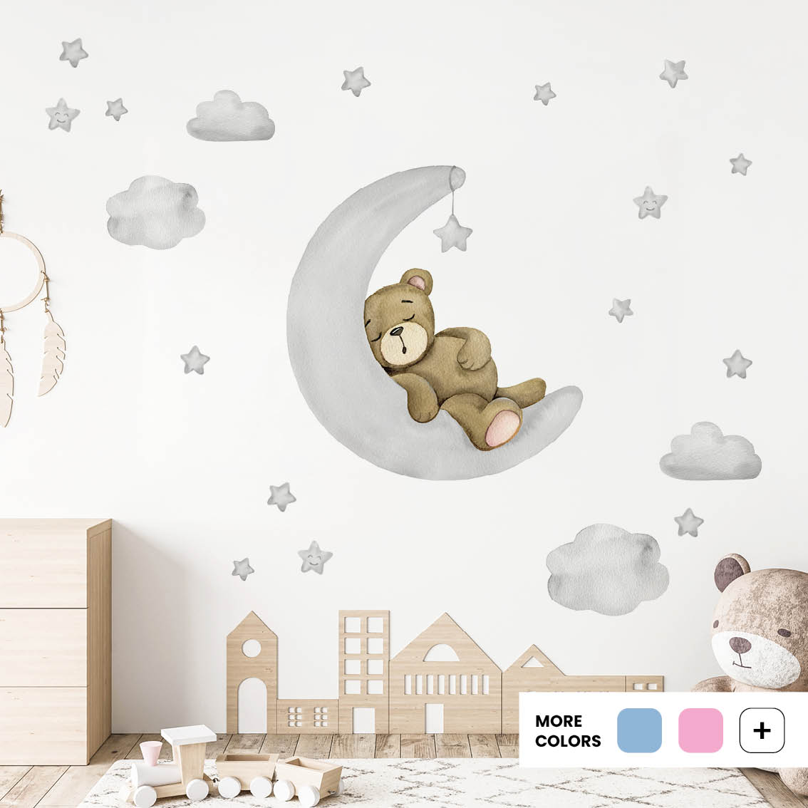 Children’s Wall Stickers Teddy’S Moon Adventure is a perfect choice for nurseries, playrooms and bedrooms. It combines style with practicality and ensures walls stay beautiful. Order today and let your child’s room shine with character and joy.