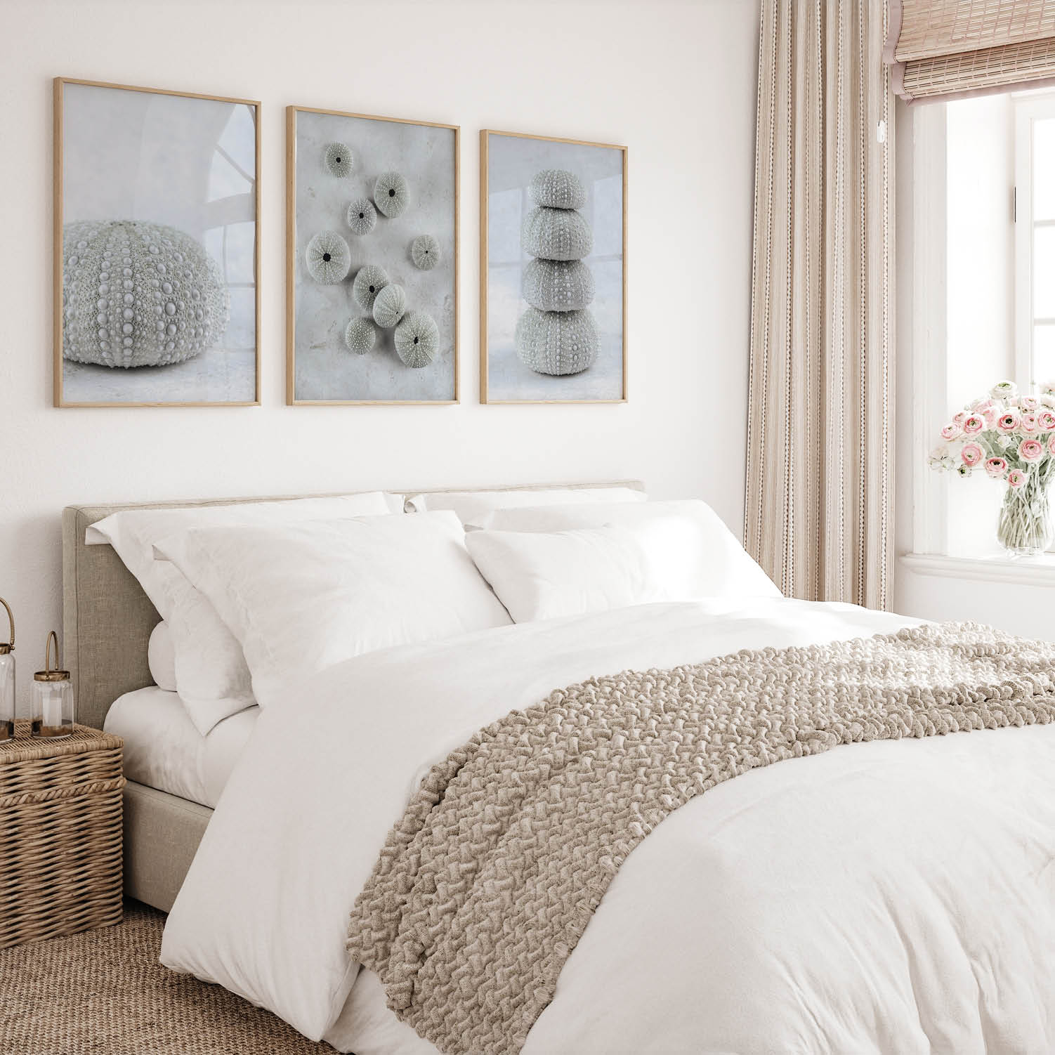 The “Seaside Monuments” poster set brings the peace and simplicity of the seaside directly into your space through a series of three fascinating depictions of sea urchins. Each poster details different aspects of these sea creatures, highlighting their complex texture and unique structure.