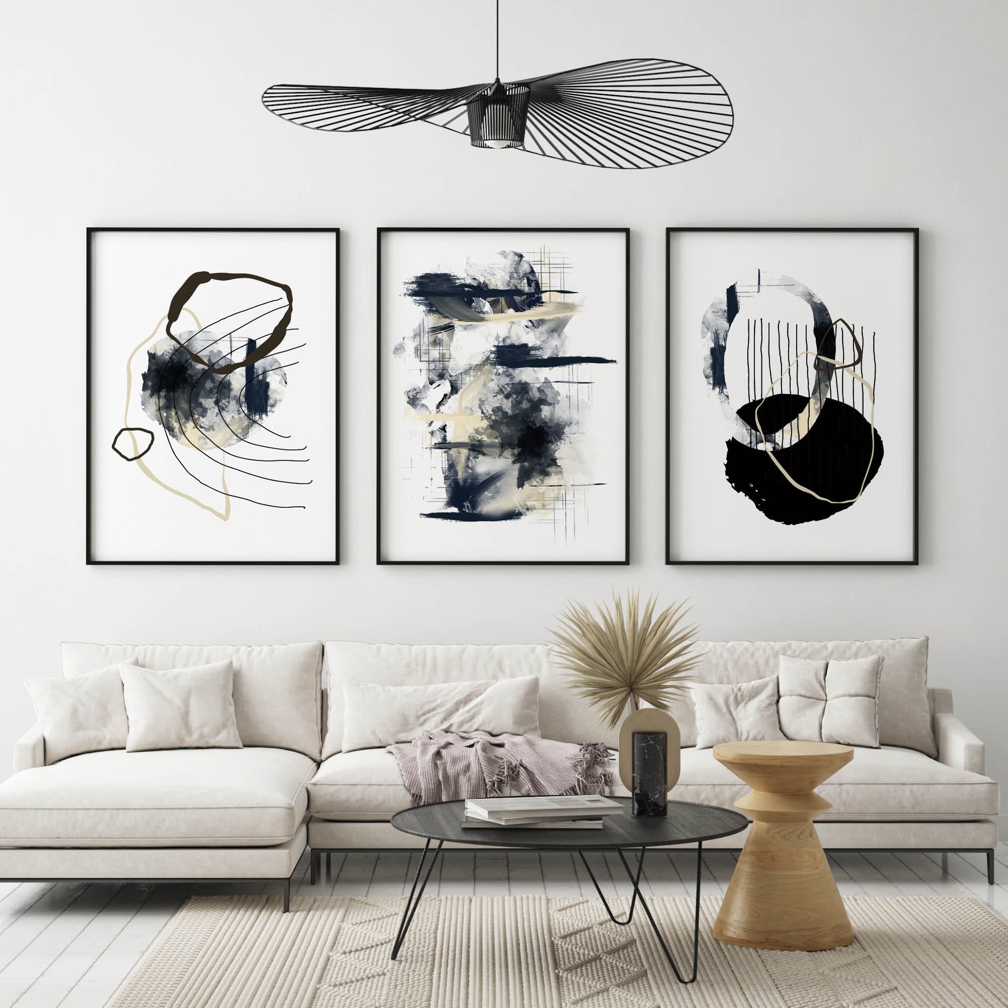 These images are printed on high-quality material, which guarantees the longevity of the colors and the preservation of the details of each element. Let the sophisticated gray shades, golden touches and airy white background take you to a world of artistic expression and beauty. This set invites you to enjoy the art and the story, creating an inspiring ambiance in your home.
