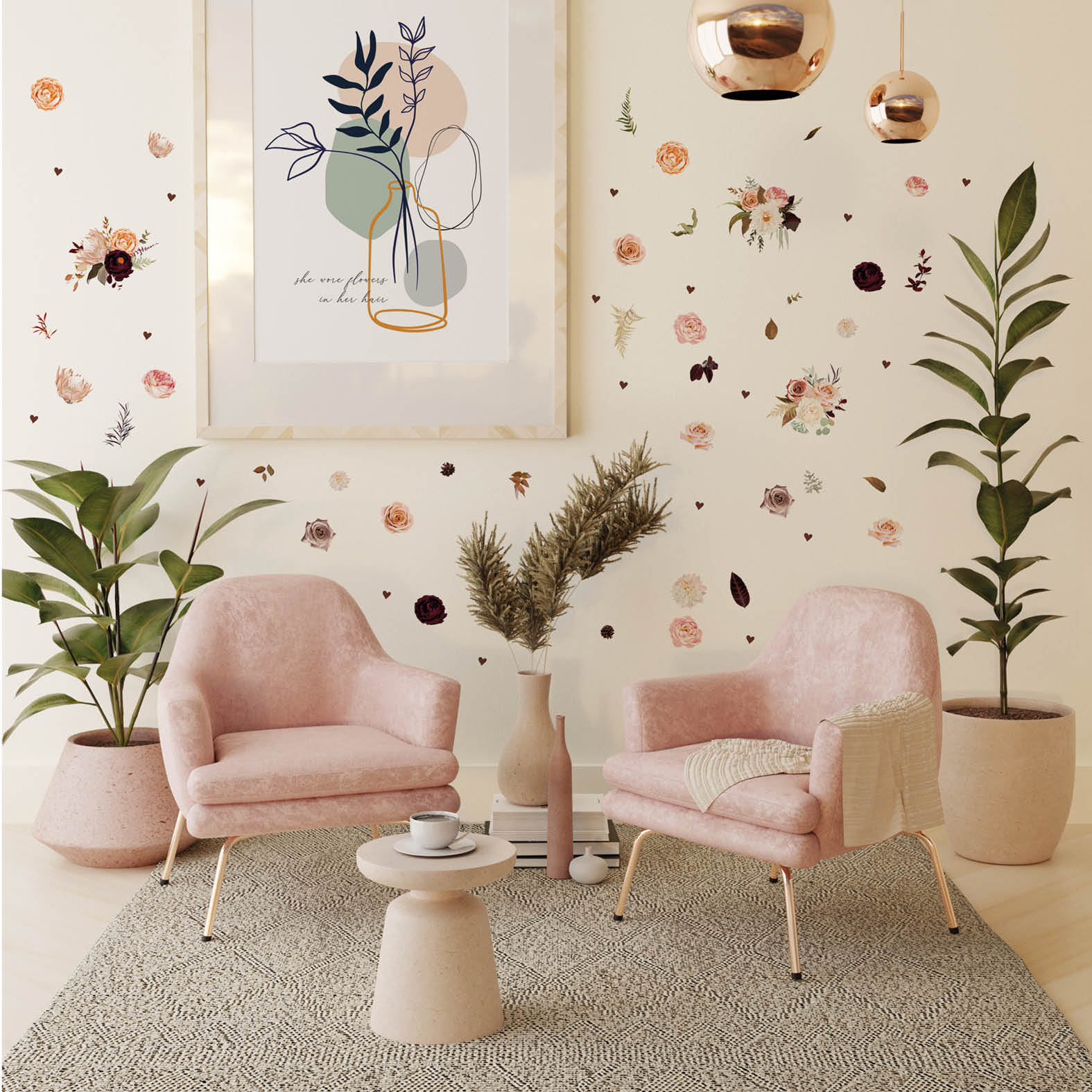 Adds boho roses details that create romantic decorative charm in interiors. Peel and stick, removable, safe for walls and shipped quickly in UAE.