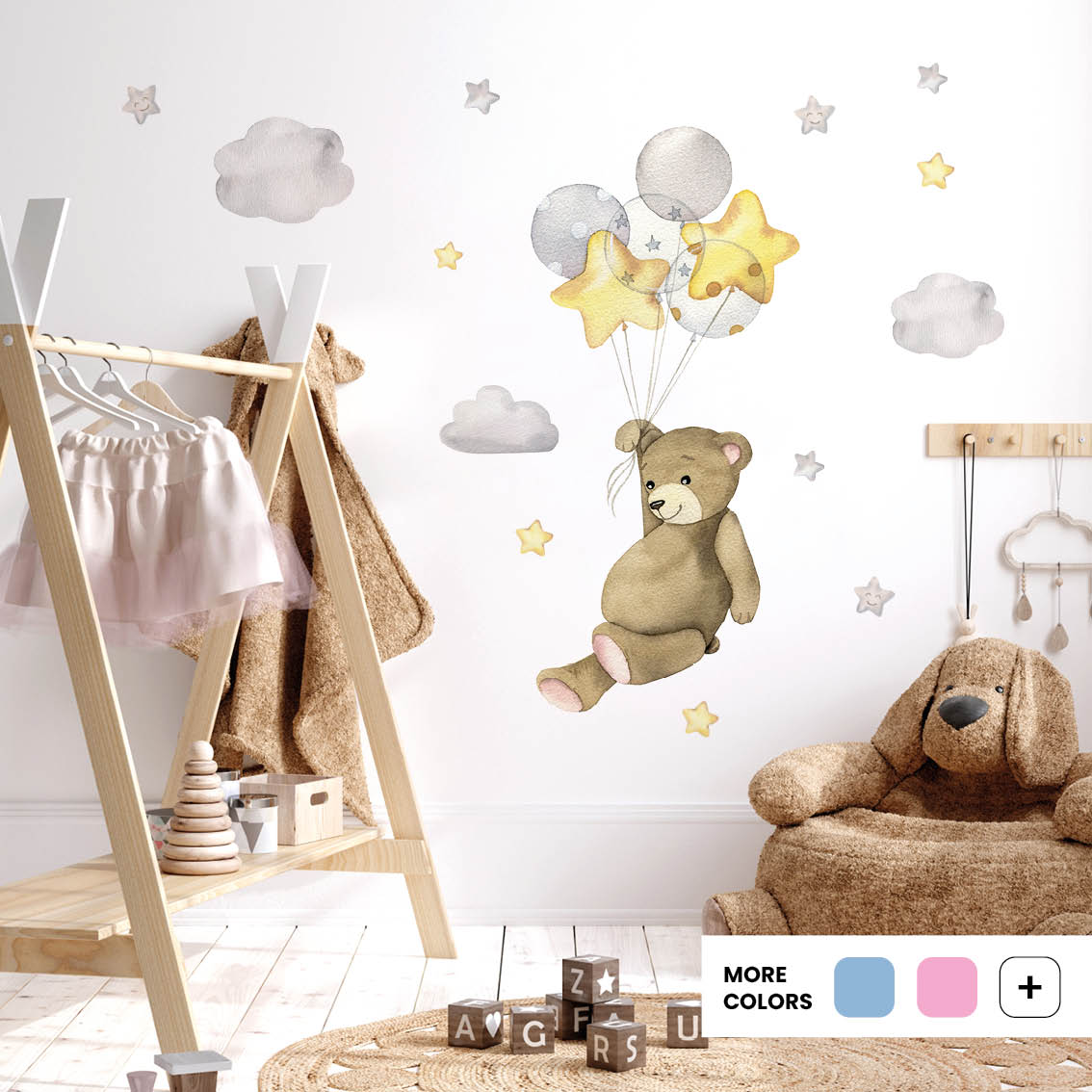 Bring playfulness to nurseries with teddy balloon adventure decals. Premium textile wall stickers are safe, removable, and easy to install.
