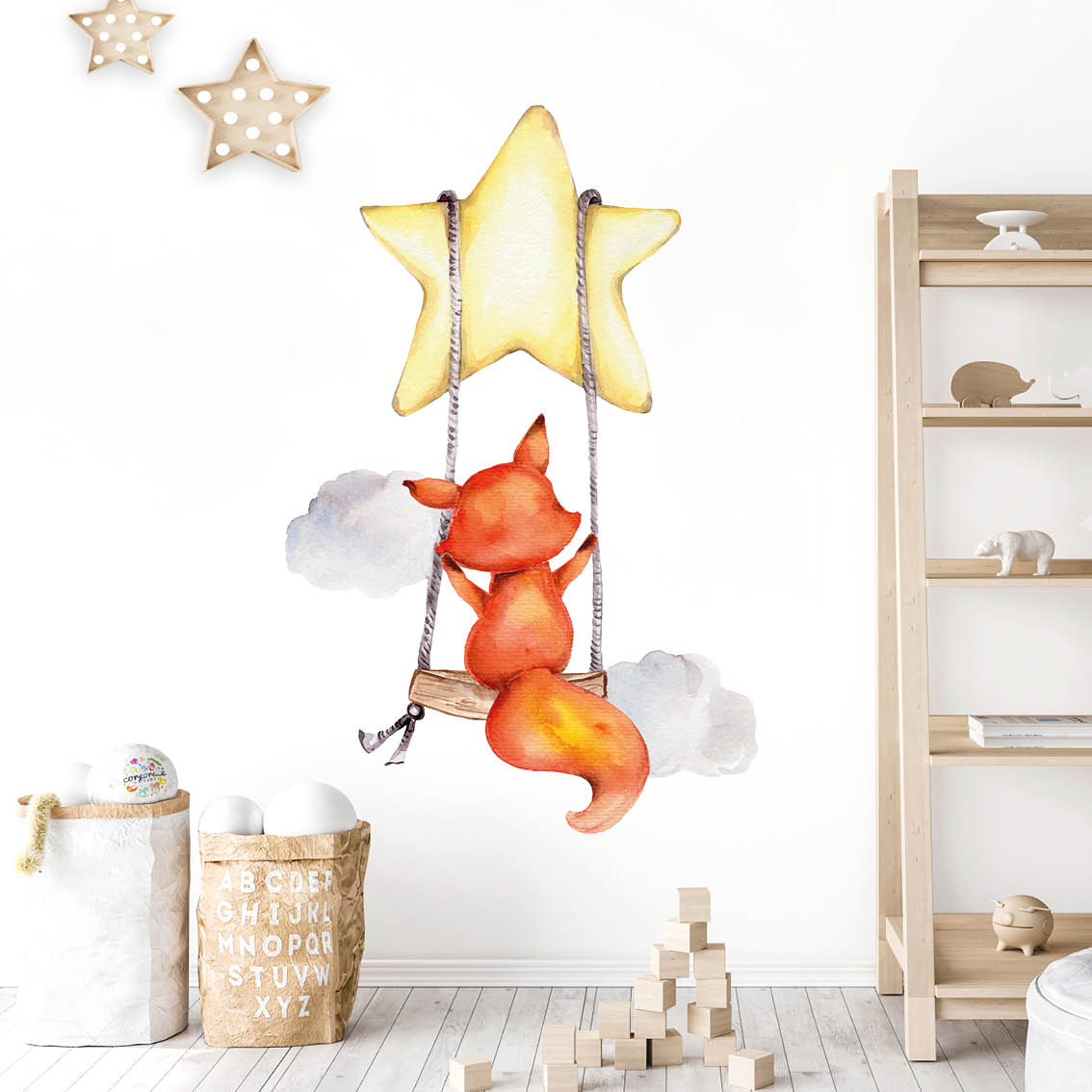 Celebrate childhood with star swing wall decals for nurseries. Premium textile stickers are removable, safe for walls, and easy to reposition.