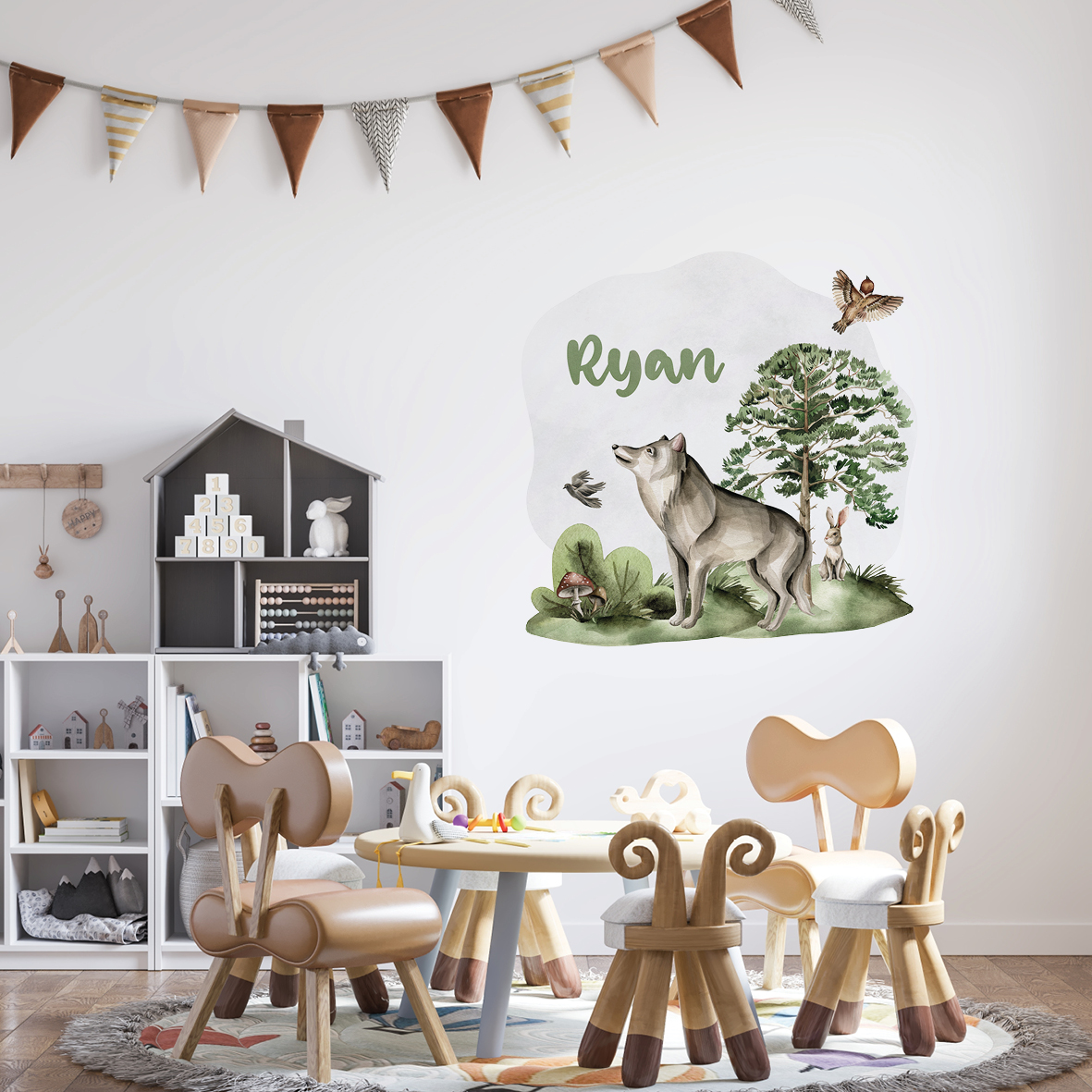 Bring calm strength, quiet confidence and a touch of forest magic into your child’s room with this personalized wall sticker featuring a gentle wolf from the Secret Life of the Forest collection. The design creates a peaceful and grounded atmosphere where imagination feels safe and free.